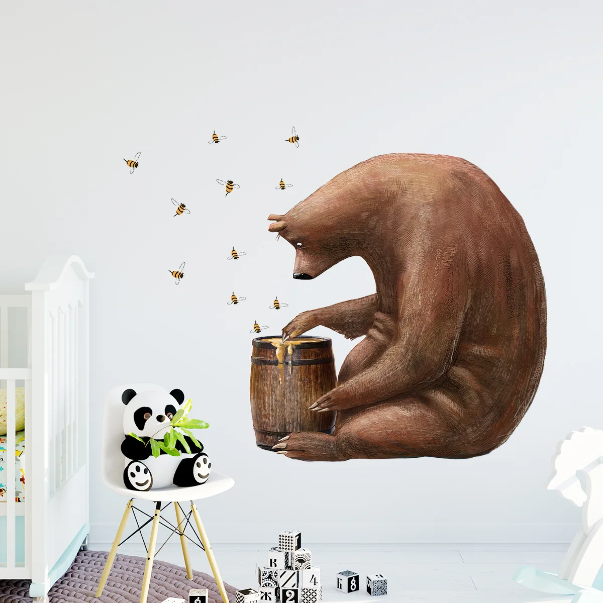 Comprar Pegatinas de pared autoadhesivas de dibujos animados, oso marrón, miel, decoración de pared para dormitorio, sala de estar, bebé, guardería, jardín de infantes