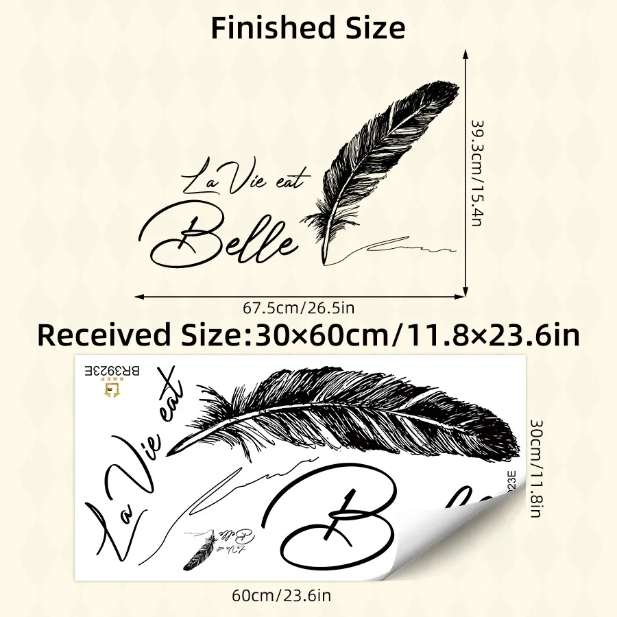 Pegatinas de pared con bolígrafo de plumas simples, pegatinas de pared autoadhesivas con fuente artística, pegatinas de decoración para dormitorio, estudio y dormitorio