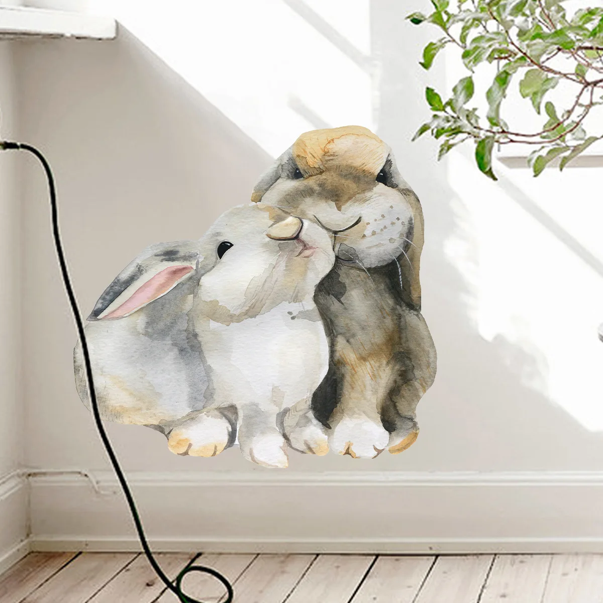 Comprar Pegatinas de pared de conejos de acuarela para habitación de niños, decoración de dormitorio de niños, guardería de bebé, calcomanías de pared autoadhesivas