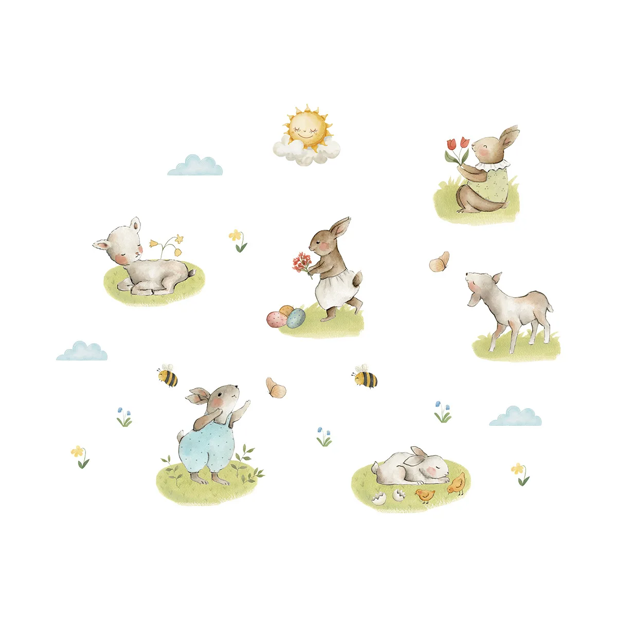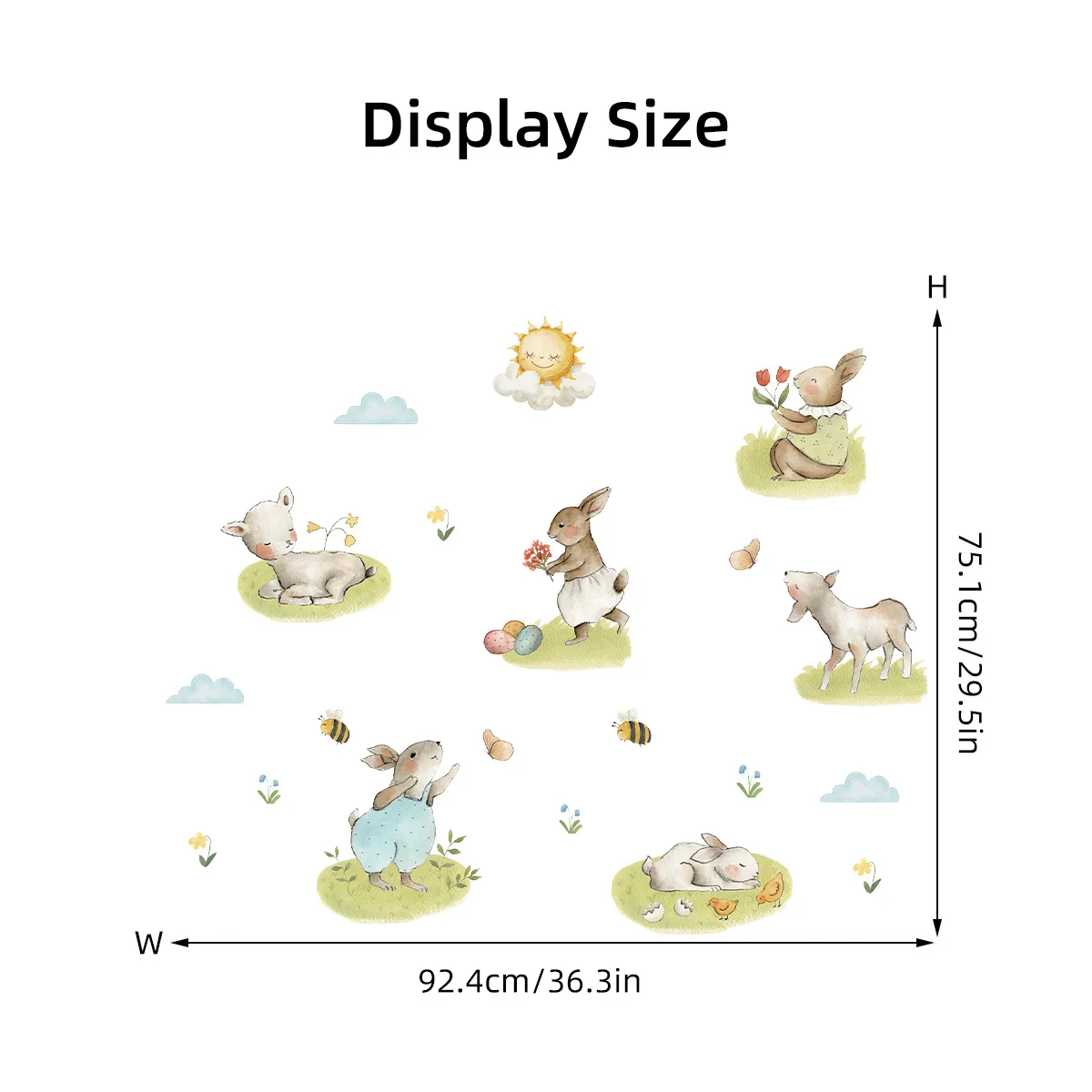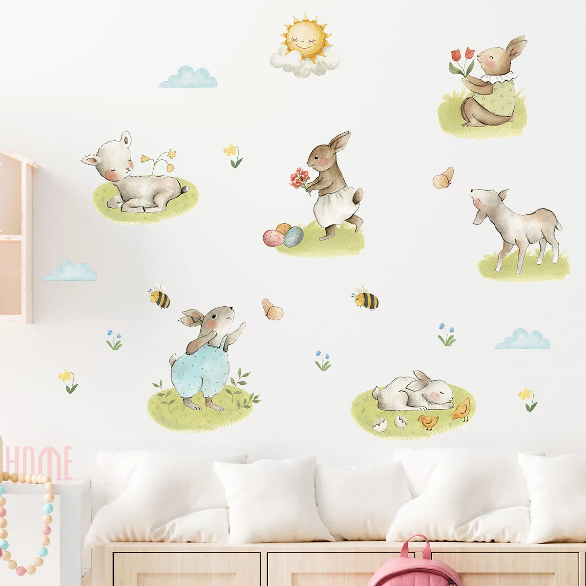 Comprar Pegatinas de pared de conejos de dibujos animados para decoración de dormitorio de habitación de niños, calcomanías de pared para guardería, papel tapiz para guardería