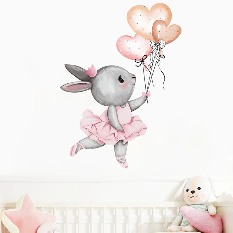 Comprar Pegatinas de pared de conejos y gatos para habitación de niños, calcomanías de papel tapiz, decoración de habitación de bebé, guardería, niñas y niños