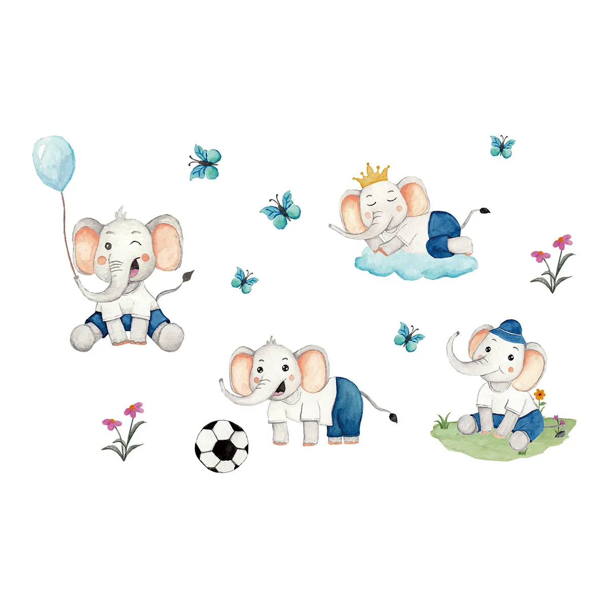 Pegatinas de pared de elefante bebé de dibujos animados, pegatinas de decoración para habitación de niños, calcomanías para guardería, papel tapiz artístico de pared para aula y jardín de infantes