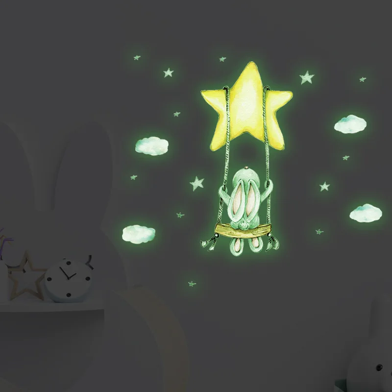 Comprar Pegatinas de pared con forma de conejo para habitación de bebé, calcomanías luminosas para decoración Interior, papel tapiz para dormitorio de niños