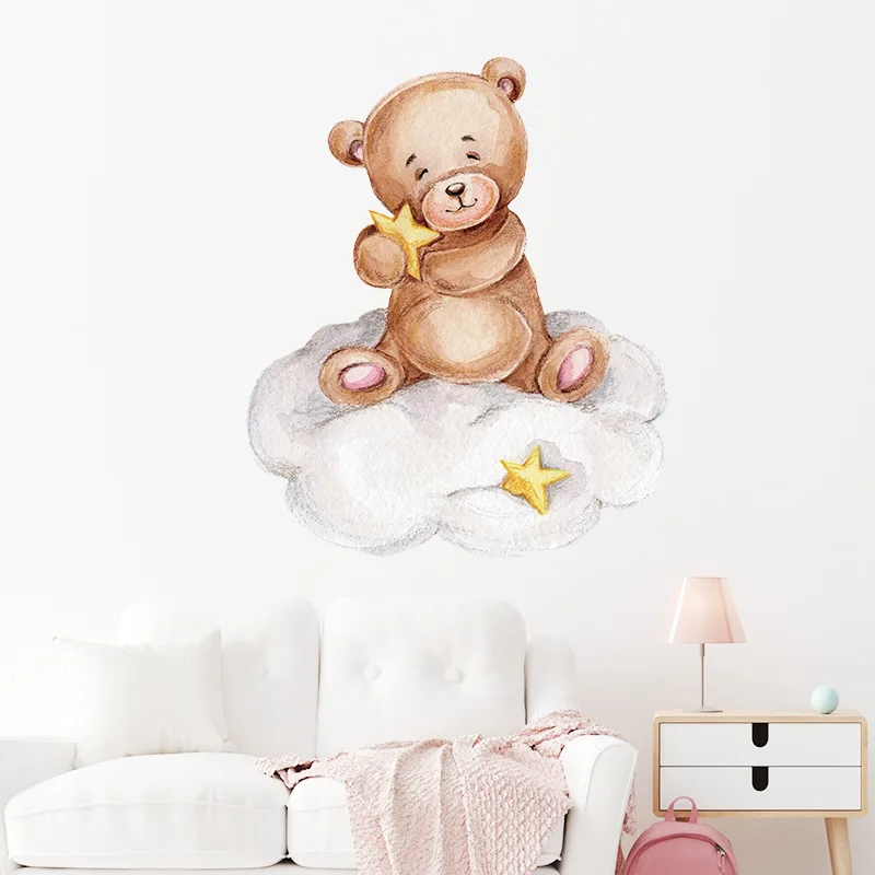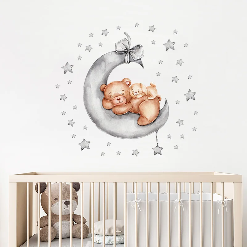Comprar Pegatinas de pared de Luna y oso de peluche de dibujos animados para habitación de niños, pegatina decorativa para guardería de bebé, papel tapiz, calcomanías de pared para habitación de bebé y dormitorio de niño y niña