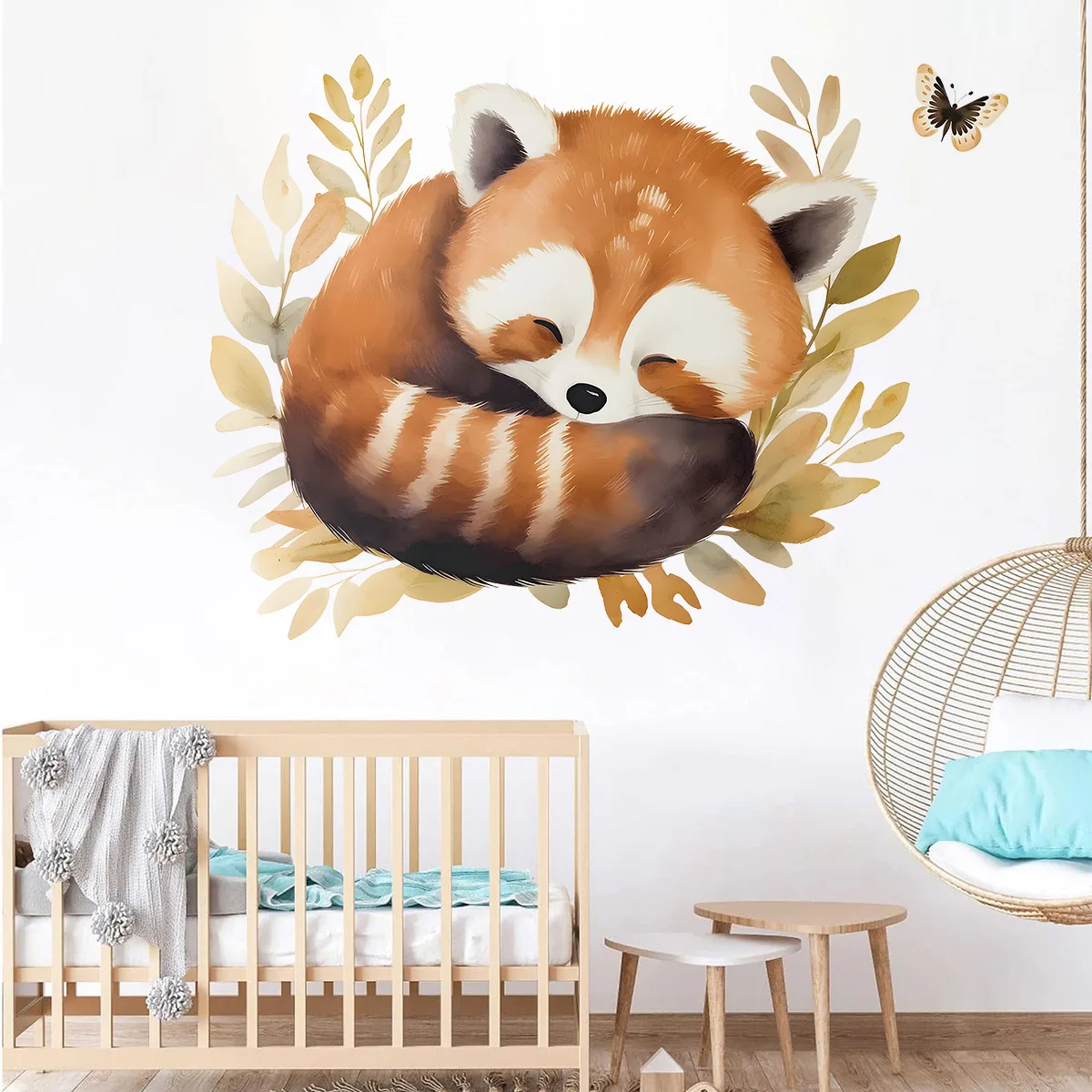 Comprar Pegatinas de pared de mapache para dormir de dibujos animados, decoración para habitación de niños, habitación de bebé, guardería, calcomanías de pared para guardería, papel tapiz de PVC
