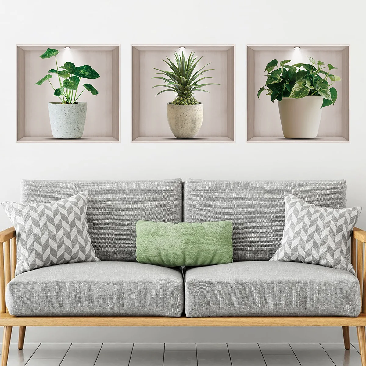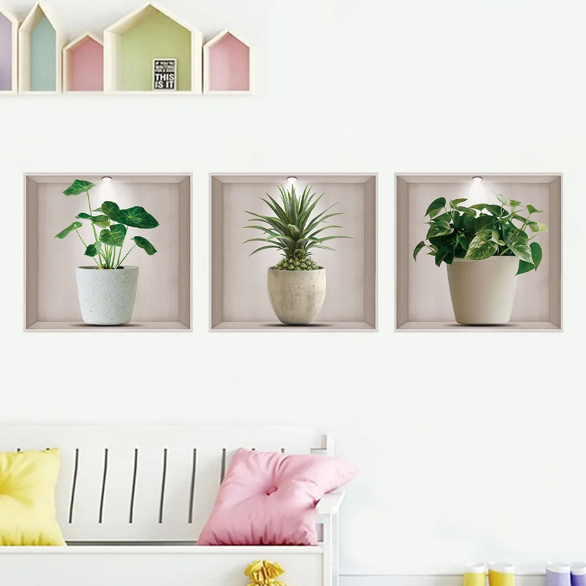 Comprar Pegatinas de pared de plantas en macetas de Cactus para fondo de armario de cocina, pintura decorativa para pared, lavabo, armario, calcomanías de pared, Mural
