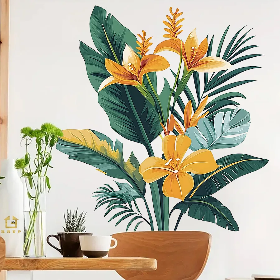 Comprar Pegatinas de pared de plantas tropicales, pegatinas de pared autoadhesivas de plátano, pegatinas de decoración de pared de plantas verdes simuladas