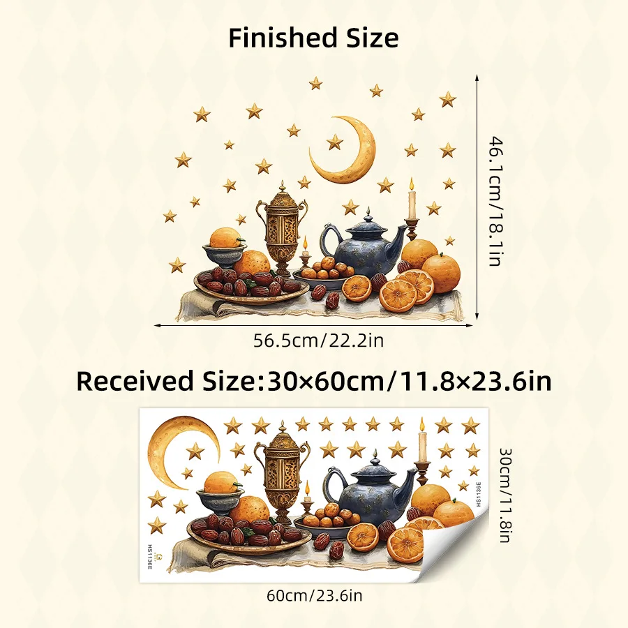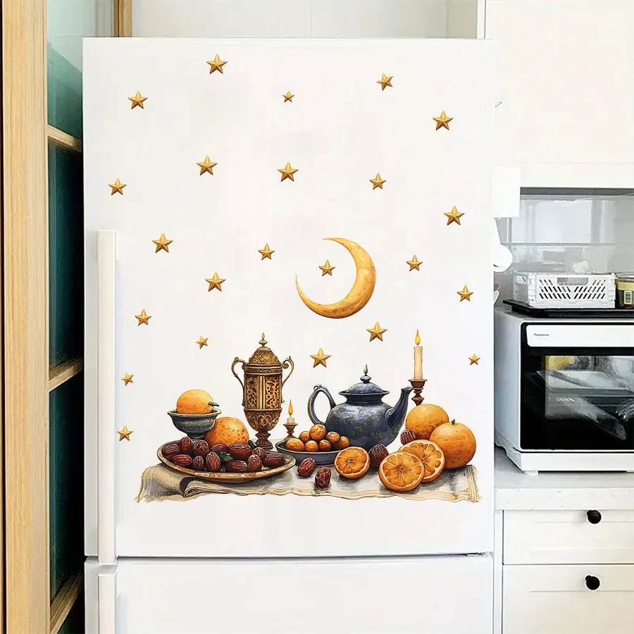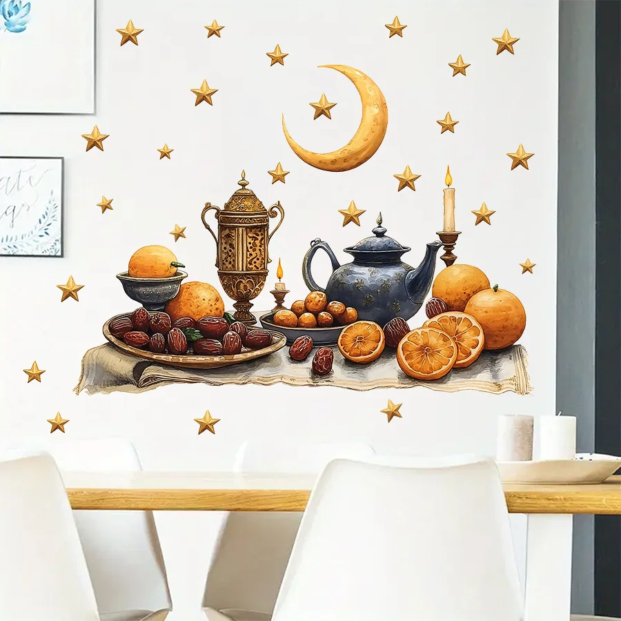 Comprar Pegatinas de pared Retro de tetera, estrella y Luna para sala de estar, decoración del hogar, calcomanías de pared de Ramadán, pegatinas autoadhesivas para decoración de dormitorio