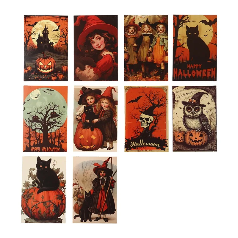 Pegatinas de pared con temática de calabaza de gato negro para decoración del hogar, tarjetas de mensaje para dormitorio festivo, cambio de imagen, 10 paquetes, 2024