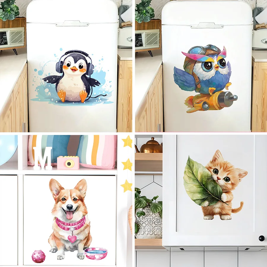 Comprar Pegatinas para refrigerador de animales bonitos, pegatinas para puerta, pingüino, búho, gato, Corgi, pegatinas de pared para habitación de niños, guardería de bebé, guardería