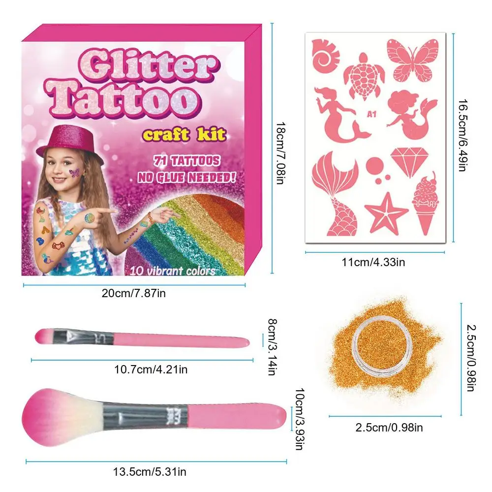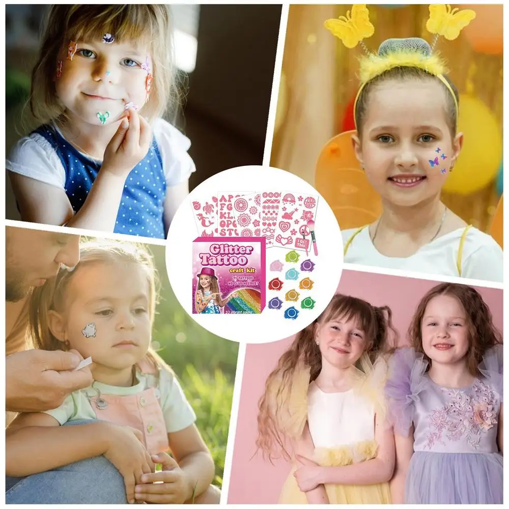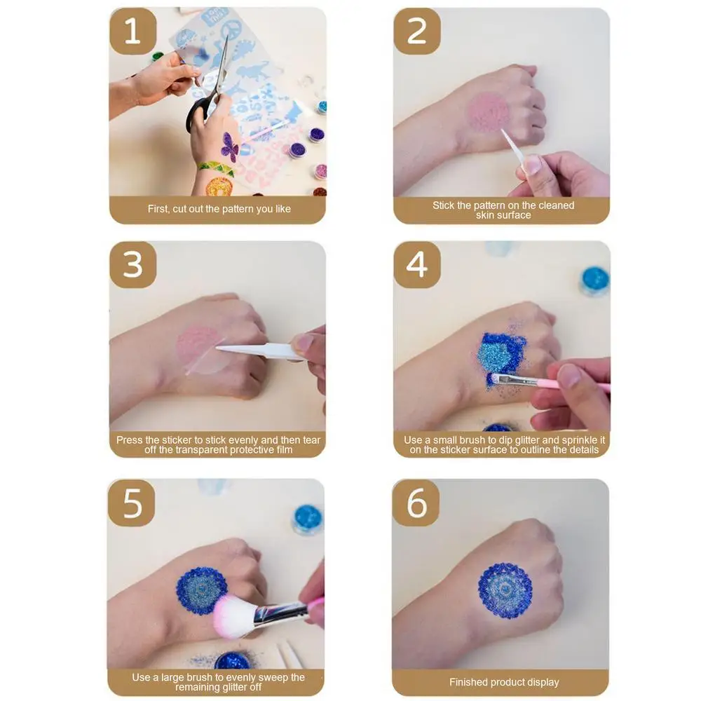 1 Juego de pegatinas con purpurina facial (incluye 5 pegatinas de transferencia de colores + 2 pinceles + 10 colores de purpurina)