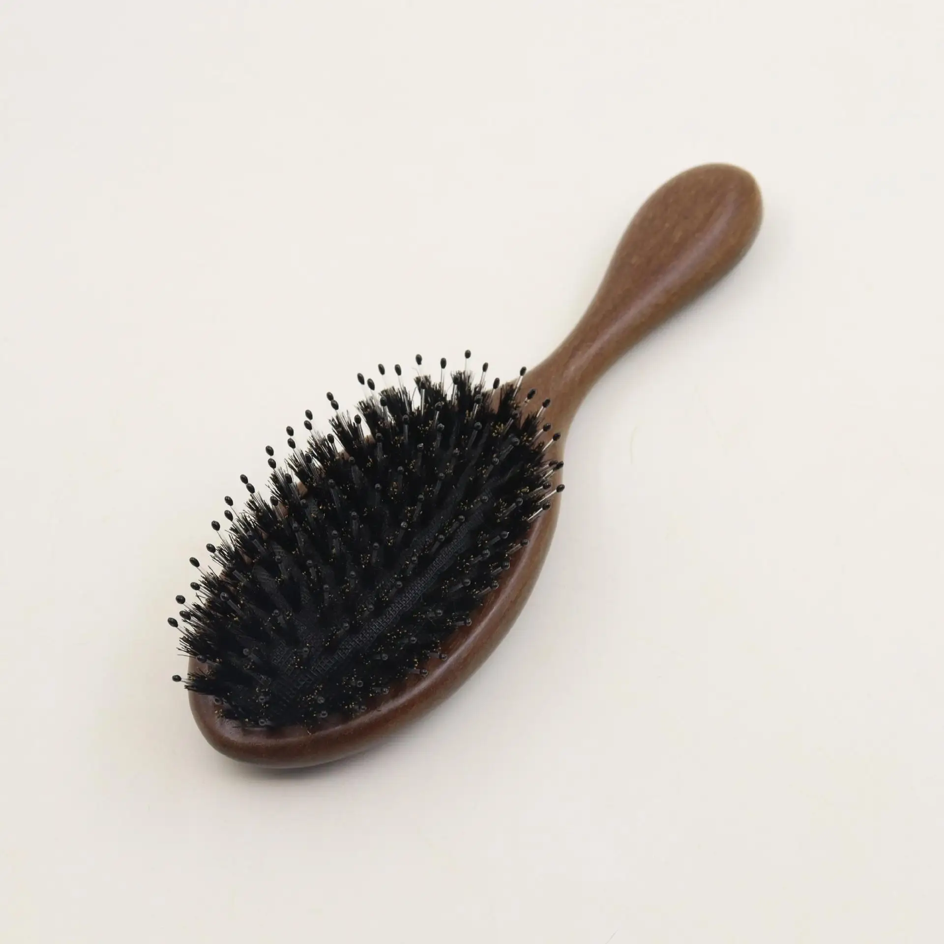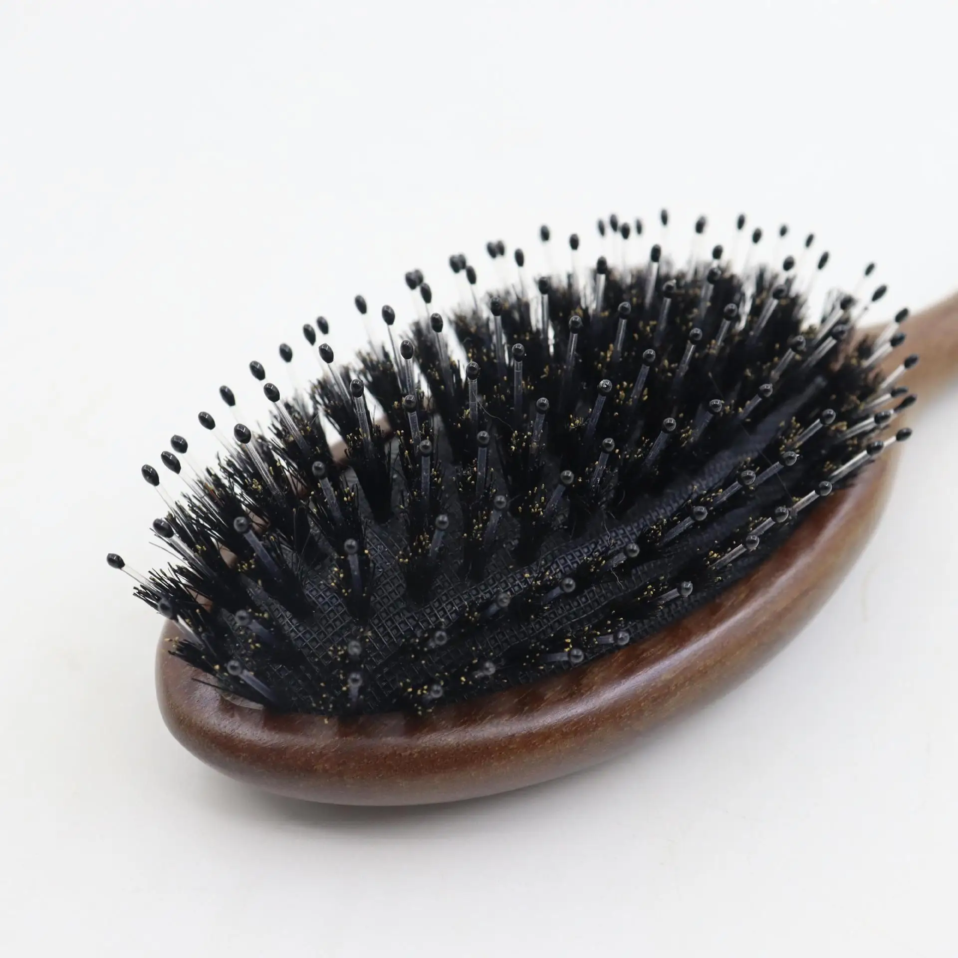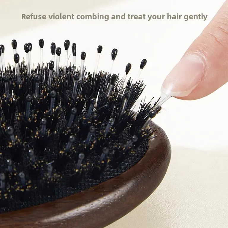Peine con cojín de aire de cerdas de jabalí de sándalo: masaje del cuero cabelludo y peine meridiano, cabello liso, añade volumen, perfecto para uso doméstico.