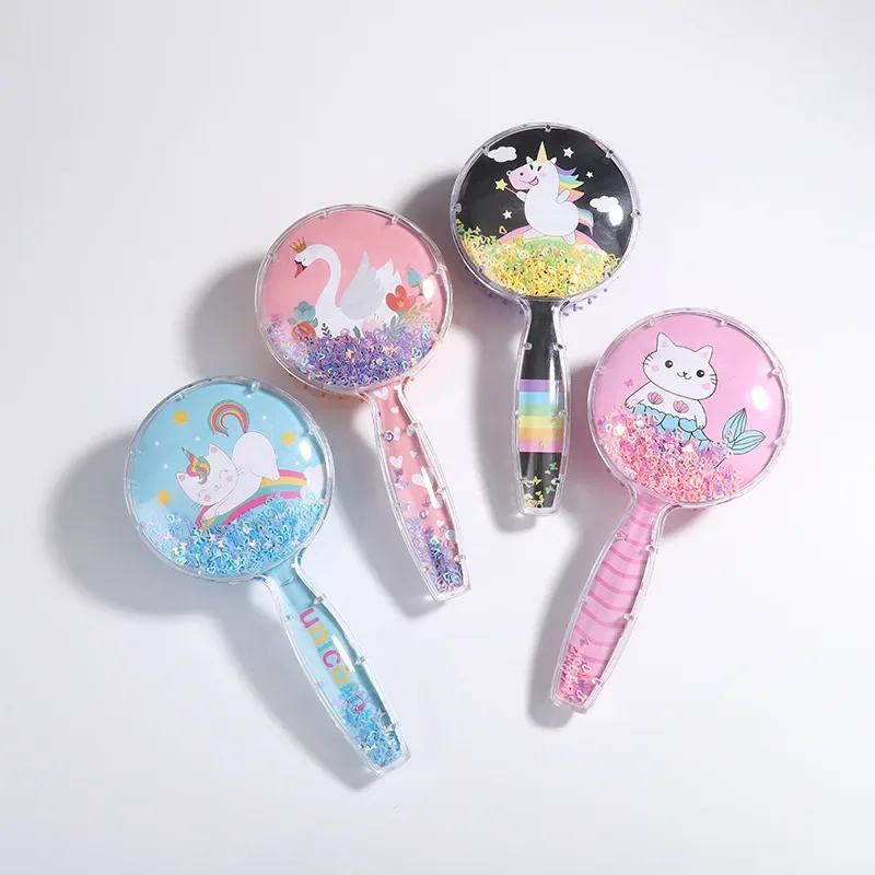 Comprar Peine para el pelo con lentejuelas y animales redondos con bonito patrón de dibujos animados para niños y niñas, peine de masaje antinudo, cepillo para el pelo