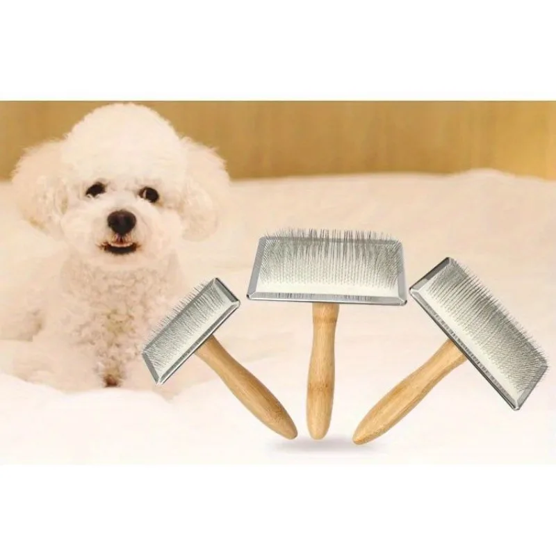 Peine de madera maciza para perros y gatos: ¡dientes de acero inoxidable para apertura de nudos de pelo! Cepillo de masaje para quitar el pelo de mascotas