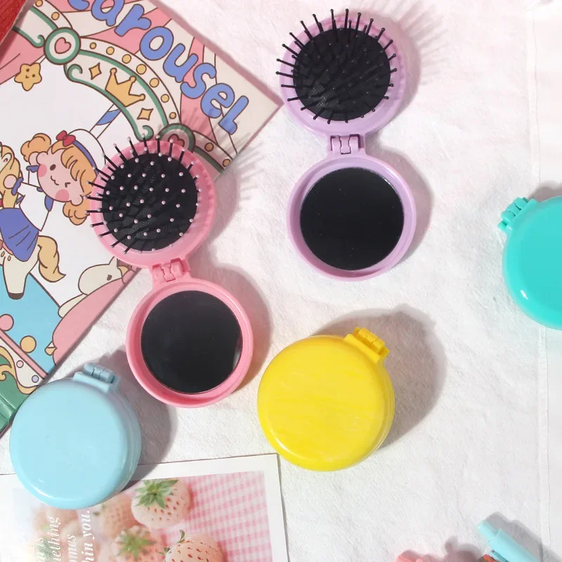 Peine plegable para bebé para mujer y niña, cepillos para el pelo con espejos, peines pequeños, viaje, herramientas de peinado de masaje portátiles, accesorios