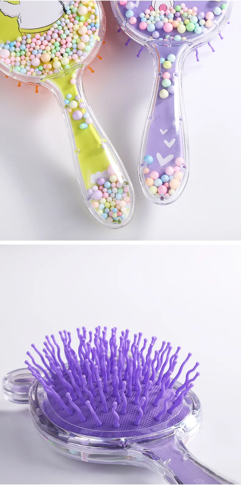 Comprar Peines antinudos de arena movediza con lentejuelas en forma de oso de dibujos animados para bebés y niños, cojín de aire, peine de masaje para cabello rizado
