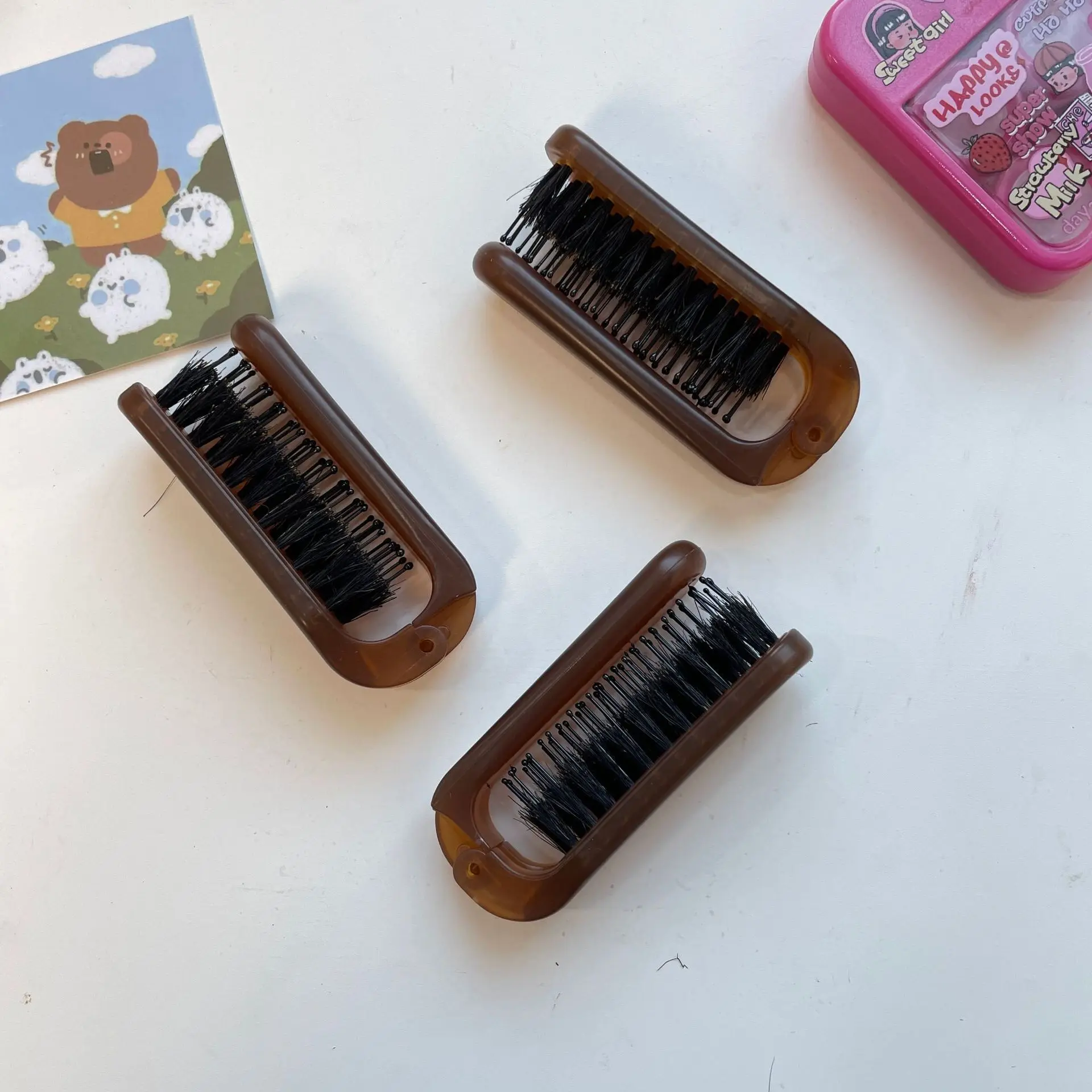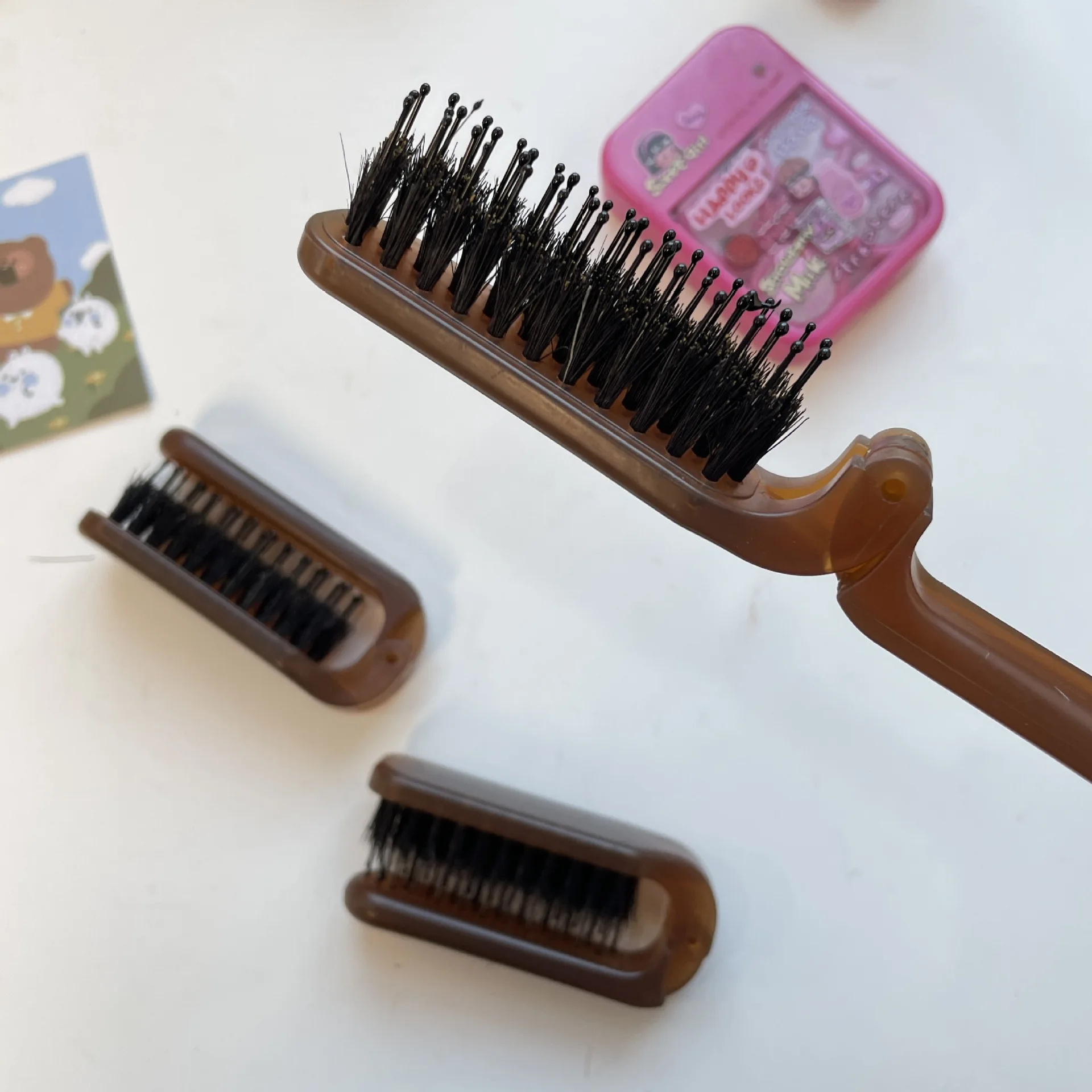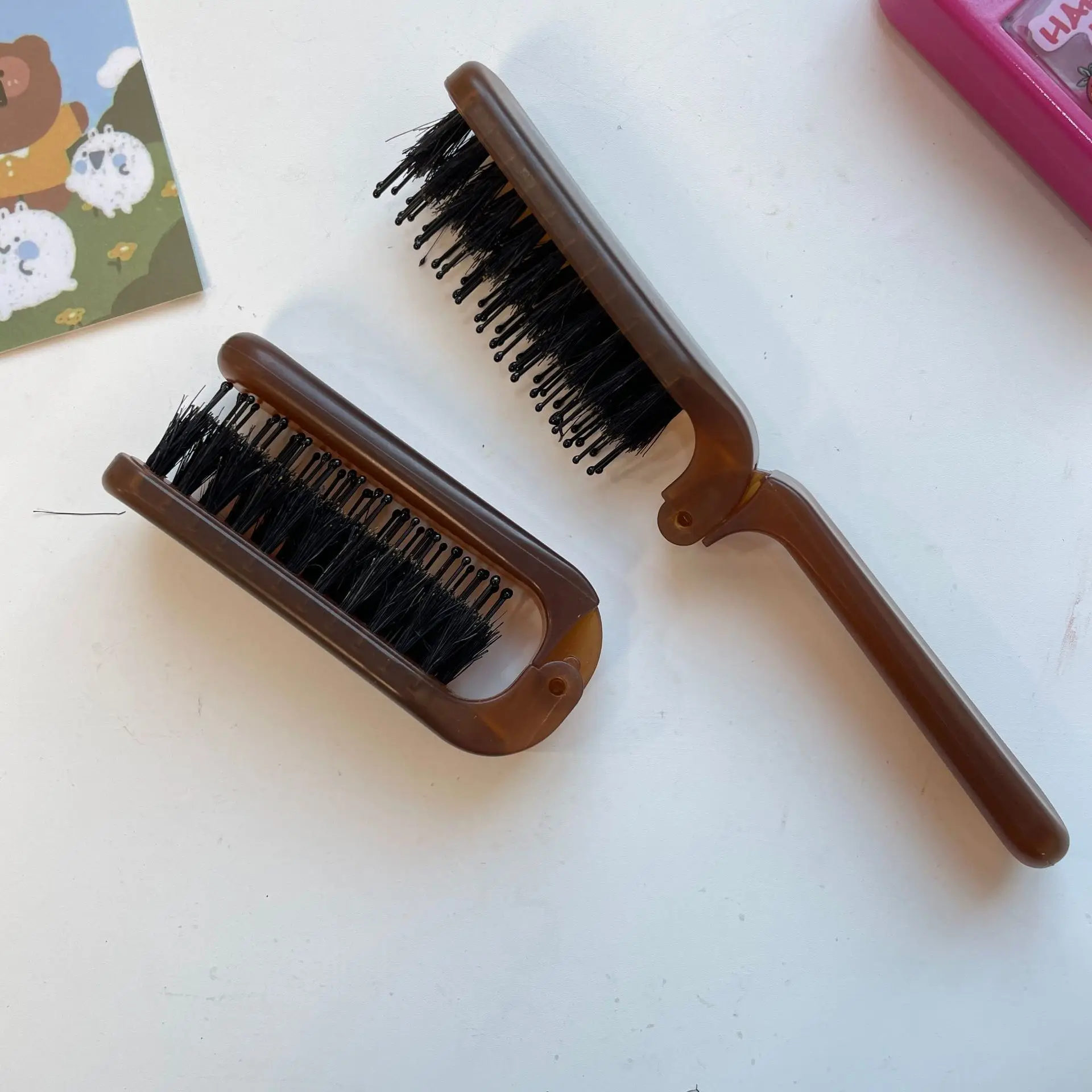 Peines para el cabello de melena de cerdo, peines de masaje para estilizar la cabeza, cepillo de pelo antiestático plegable portátil para mujer, accesorios de estilismo para peluquero