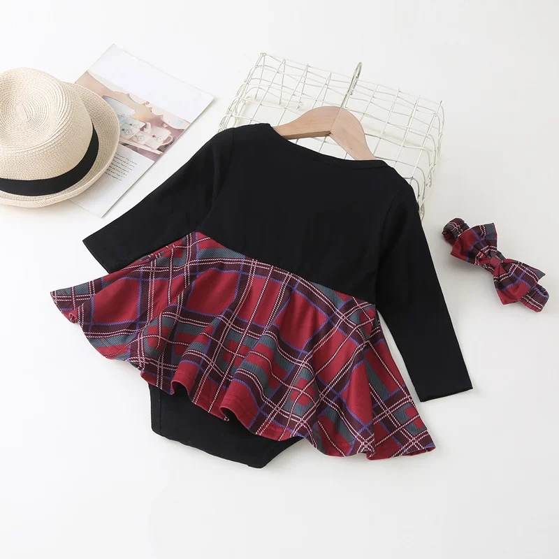 Comprar Pelele a cuadros con letras para niña, mono de manga larga para bebé, vestido de fiesta, ropa para niña de 0 a 18 meses, invierno y otoño