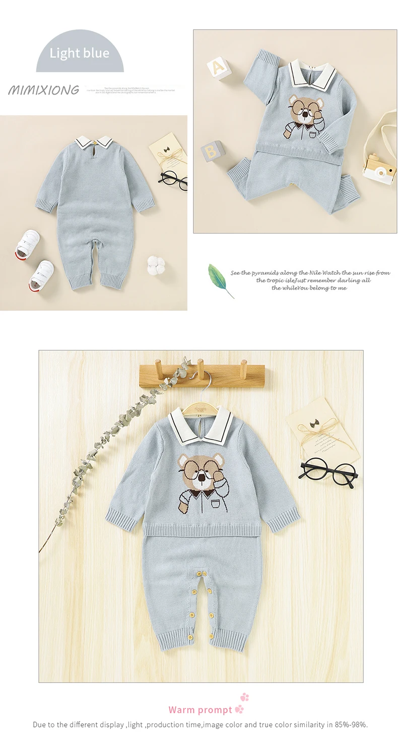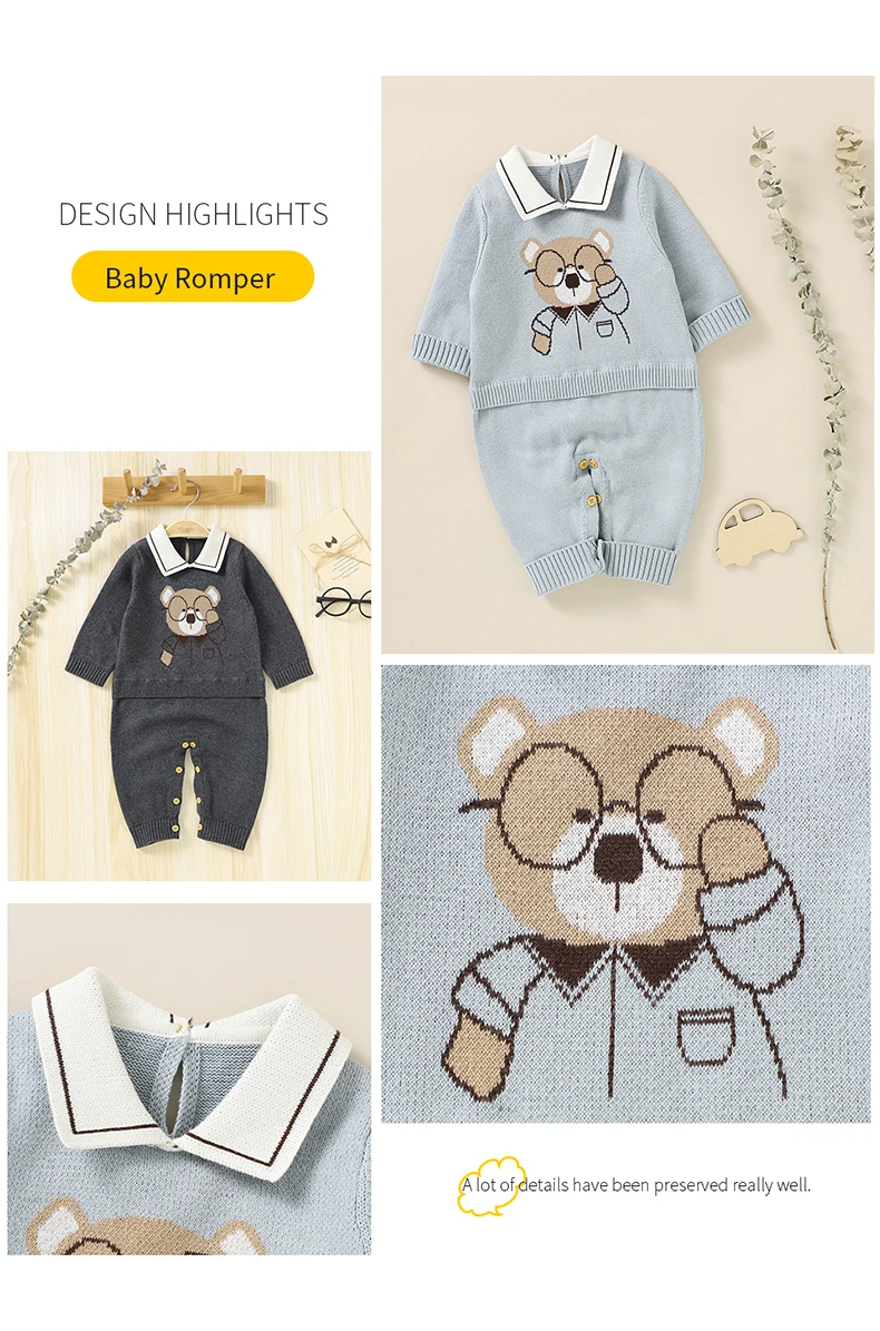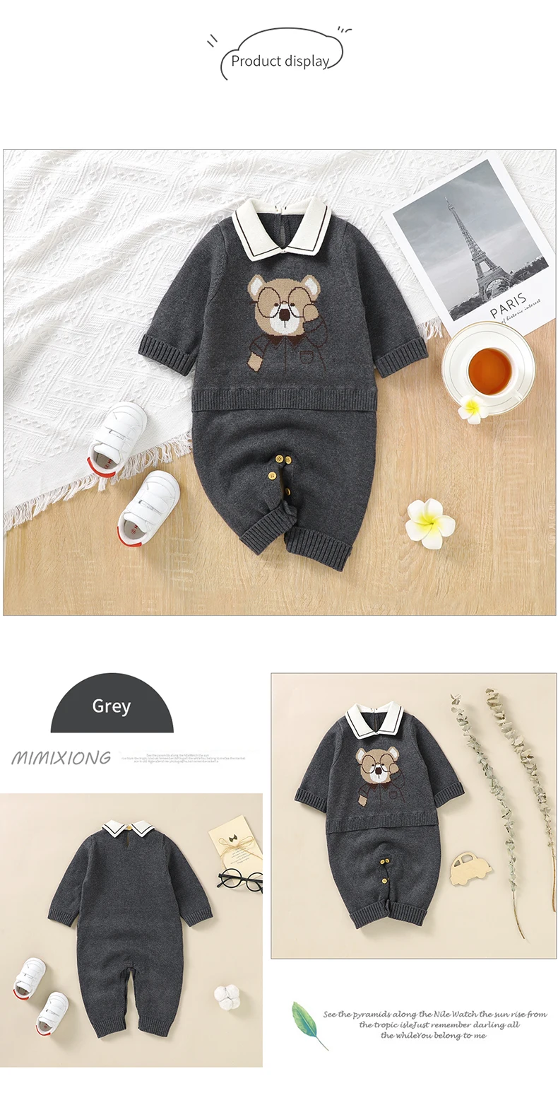 Pelele de algodón para bebé, ropa infantil de punto, mono bonito de oso de 0 a 18M, mono para recién nacidos, niños y niñas, mono de manga larga a la moda de otoño con vuelta hacia abajo