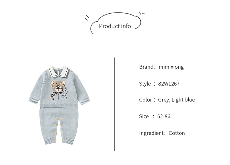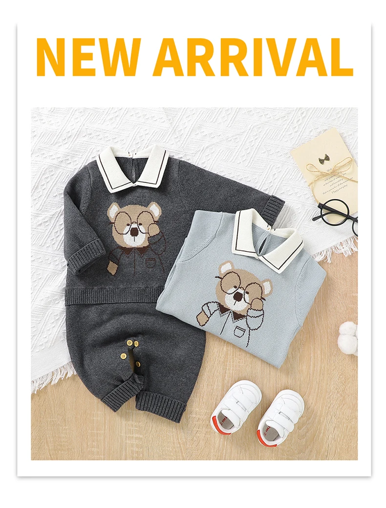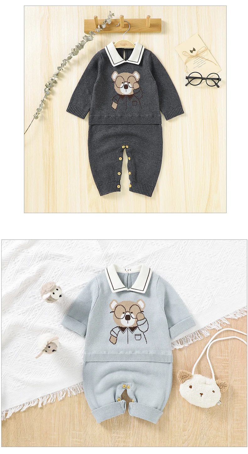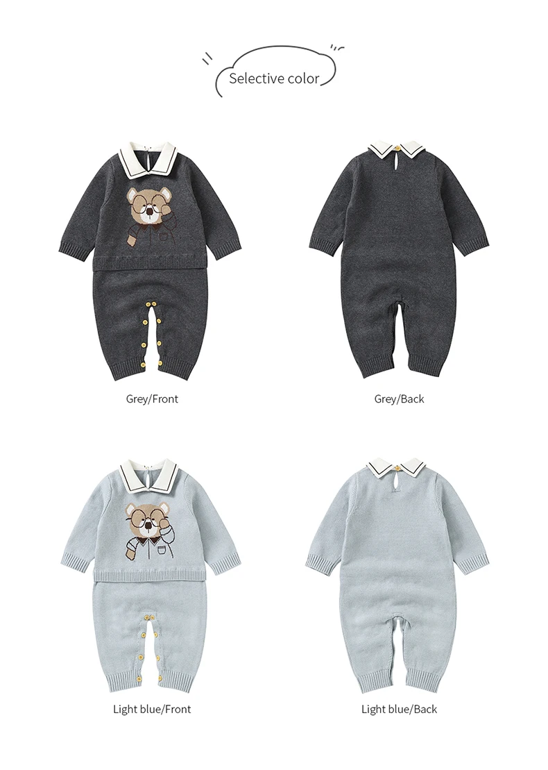 Pelele de algodón para bebé, ropa infantil de punto, mono bonito de oso de 0 a 18M, mono para recién nacidos, niños y niñas, mono de manga larga a la moda de otoño con vuelta hacia abajo