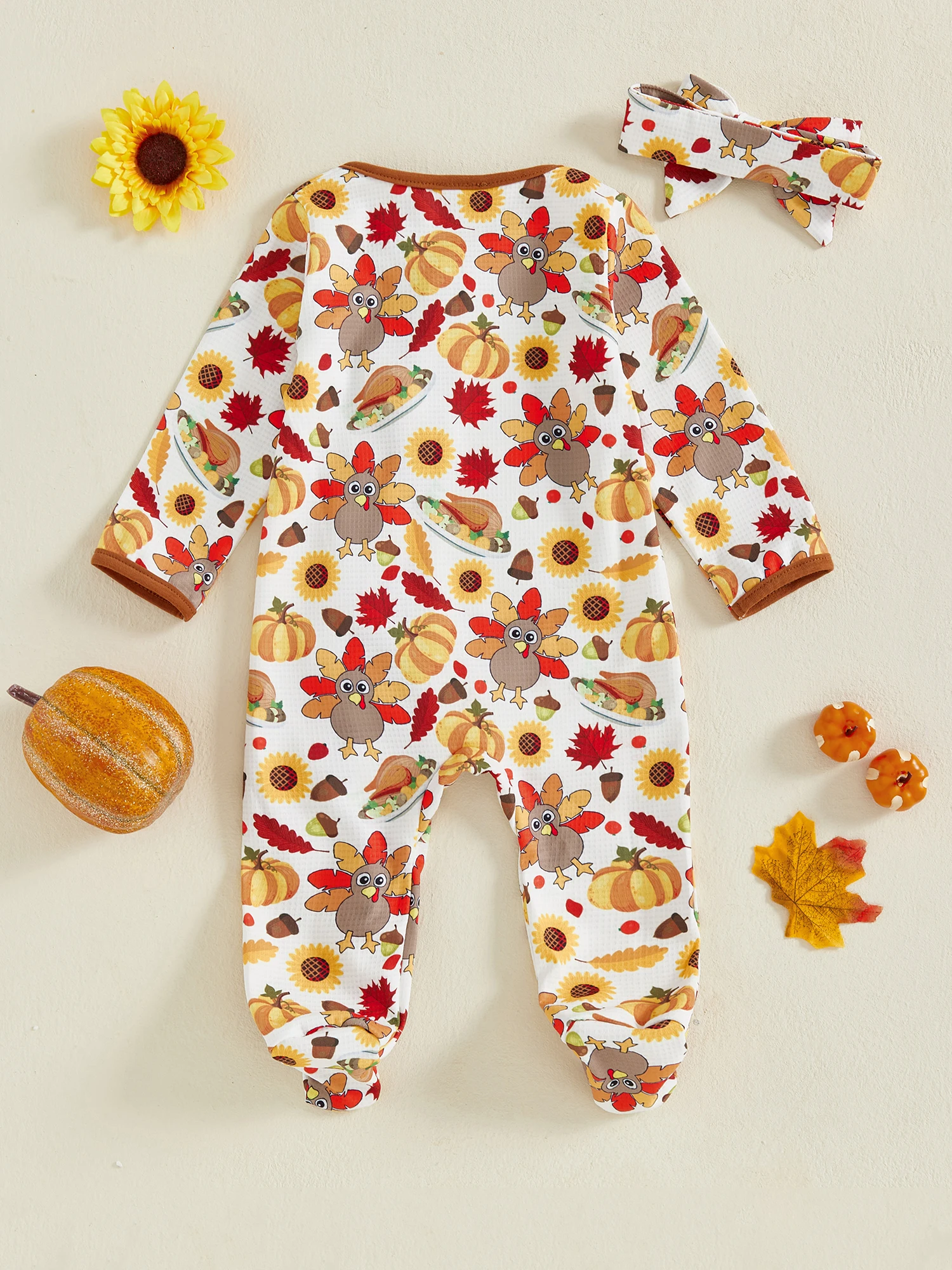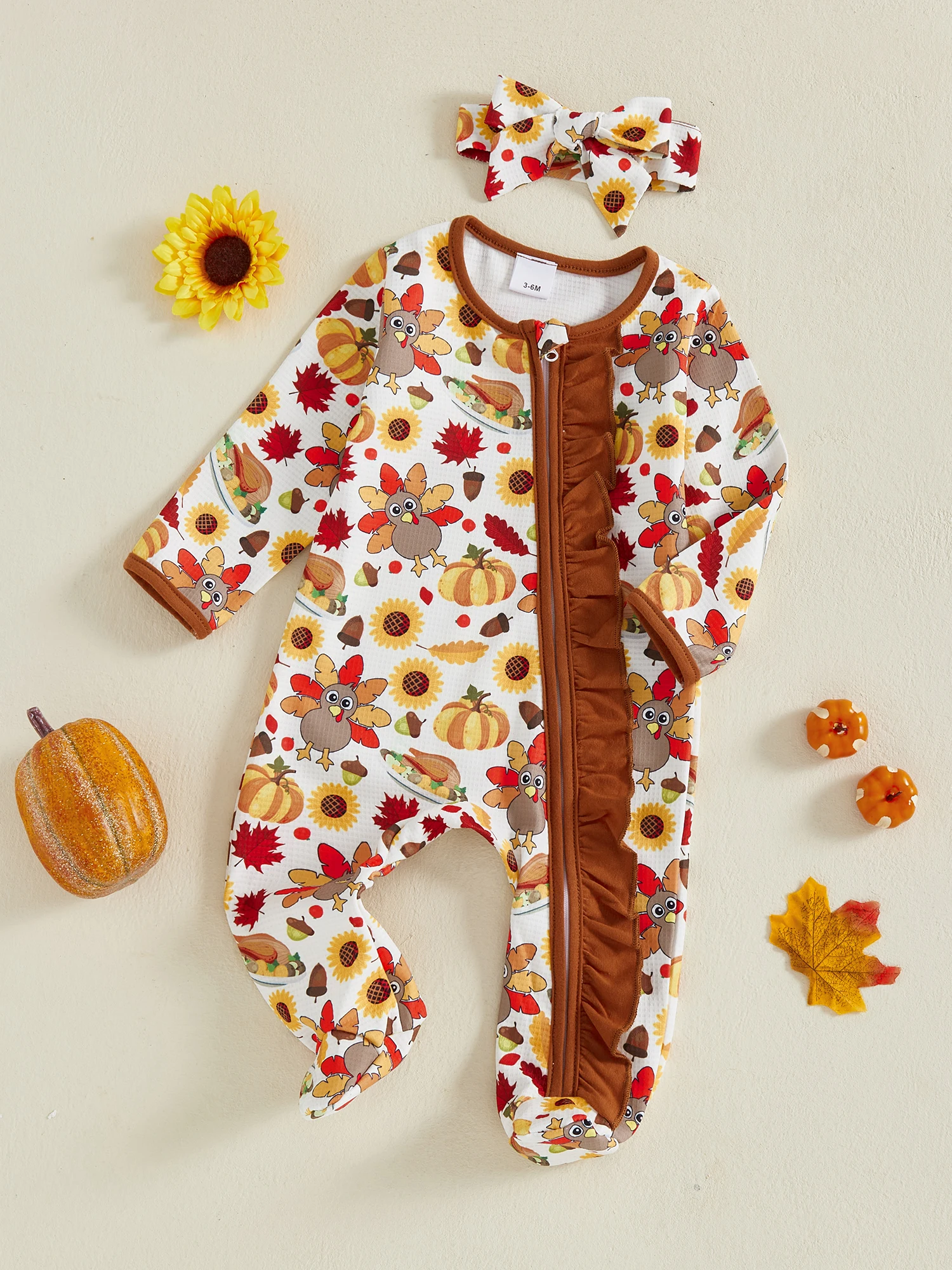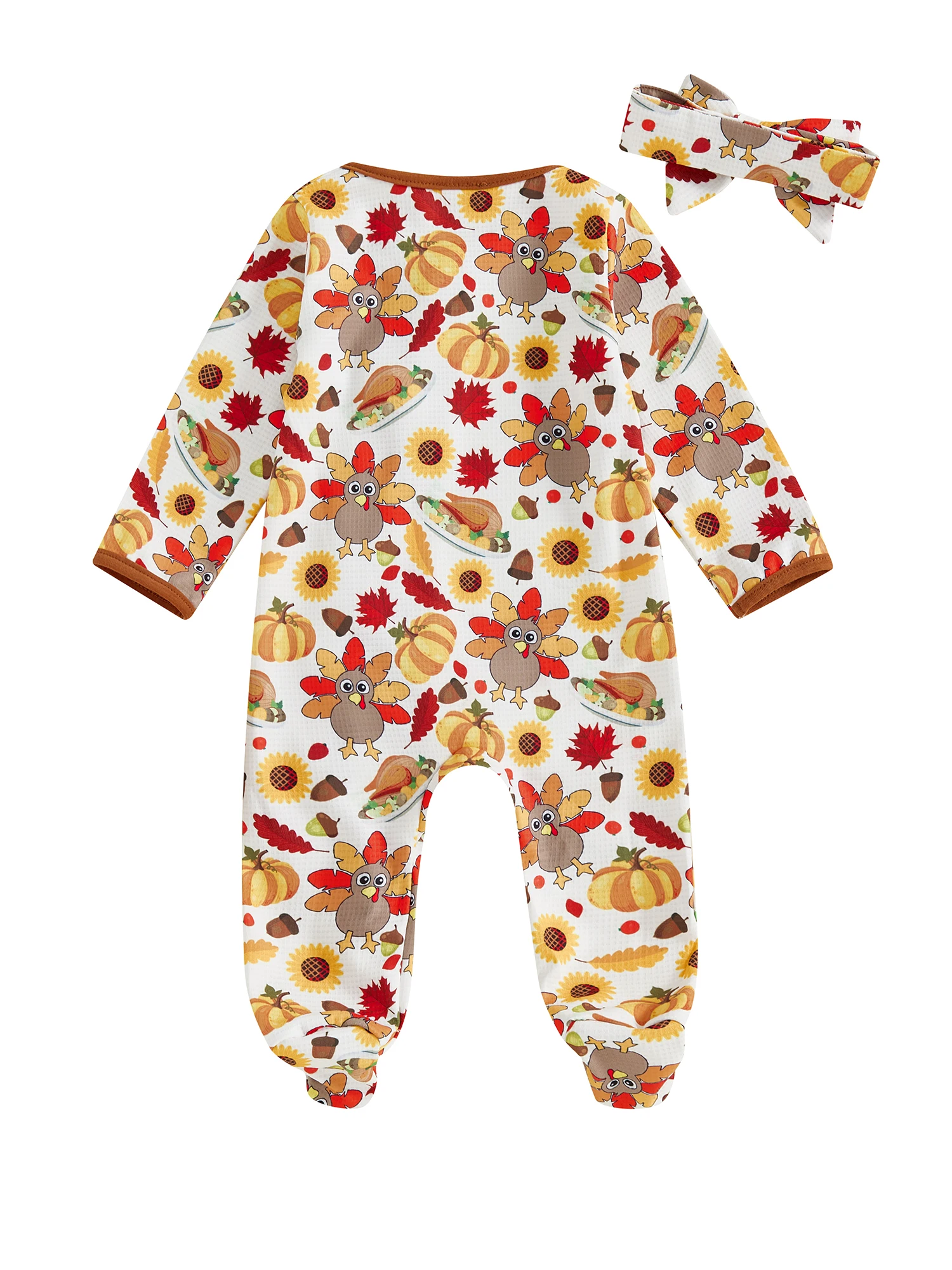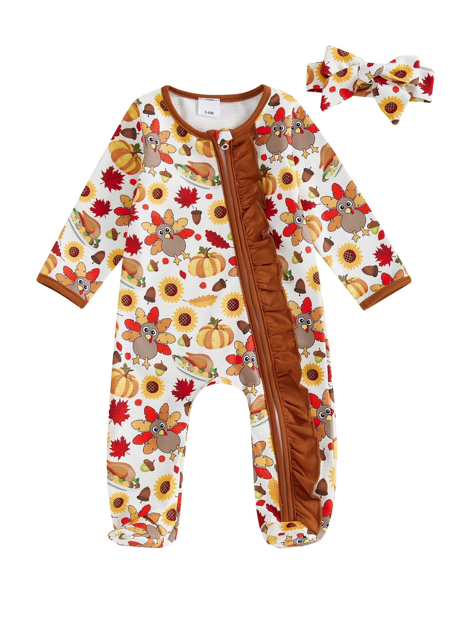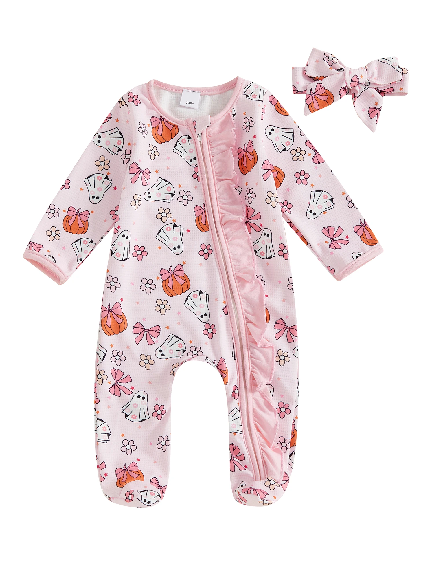 Comprar Pelele para bebé recién nacido, mono con patas y cremallera con volantes de manga larga y diadema, traje para volver a casa, Halloween, 2 uds.