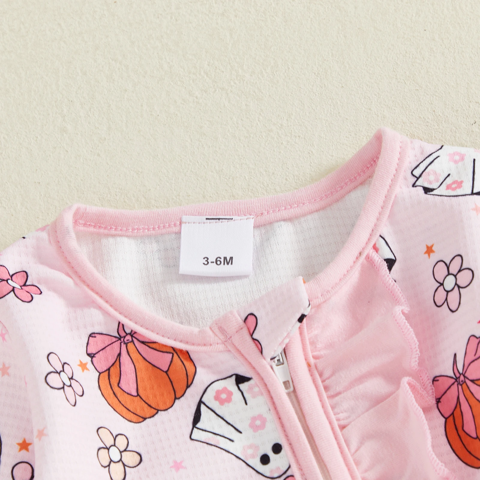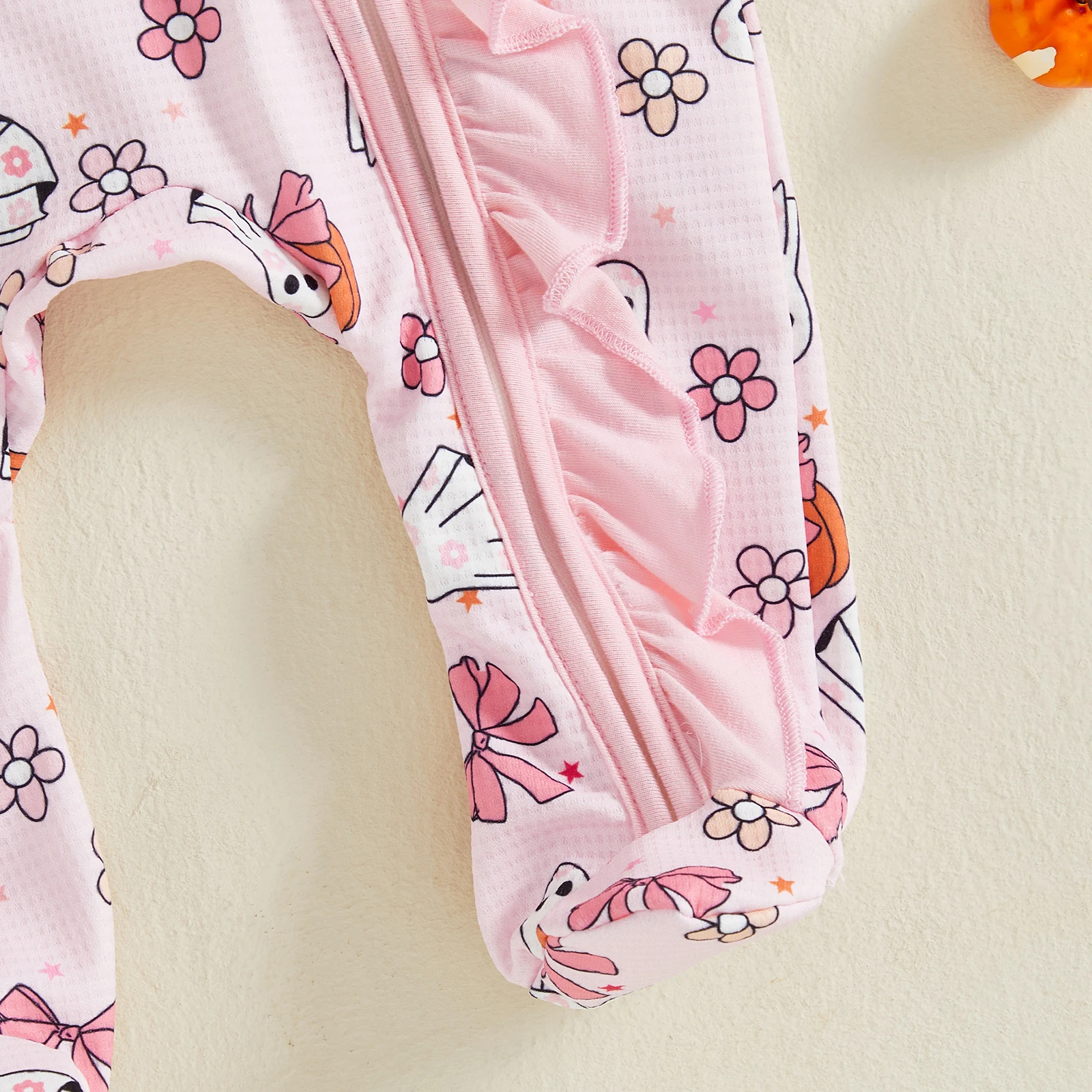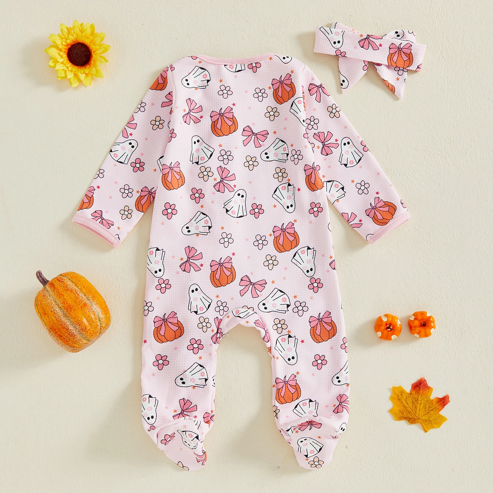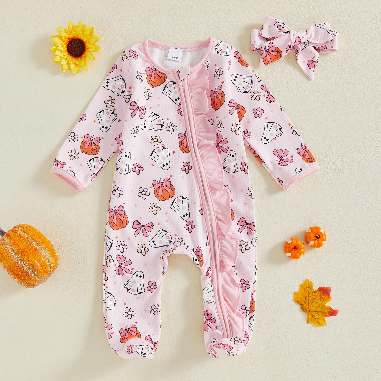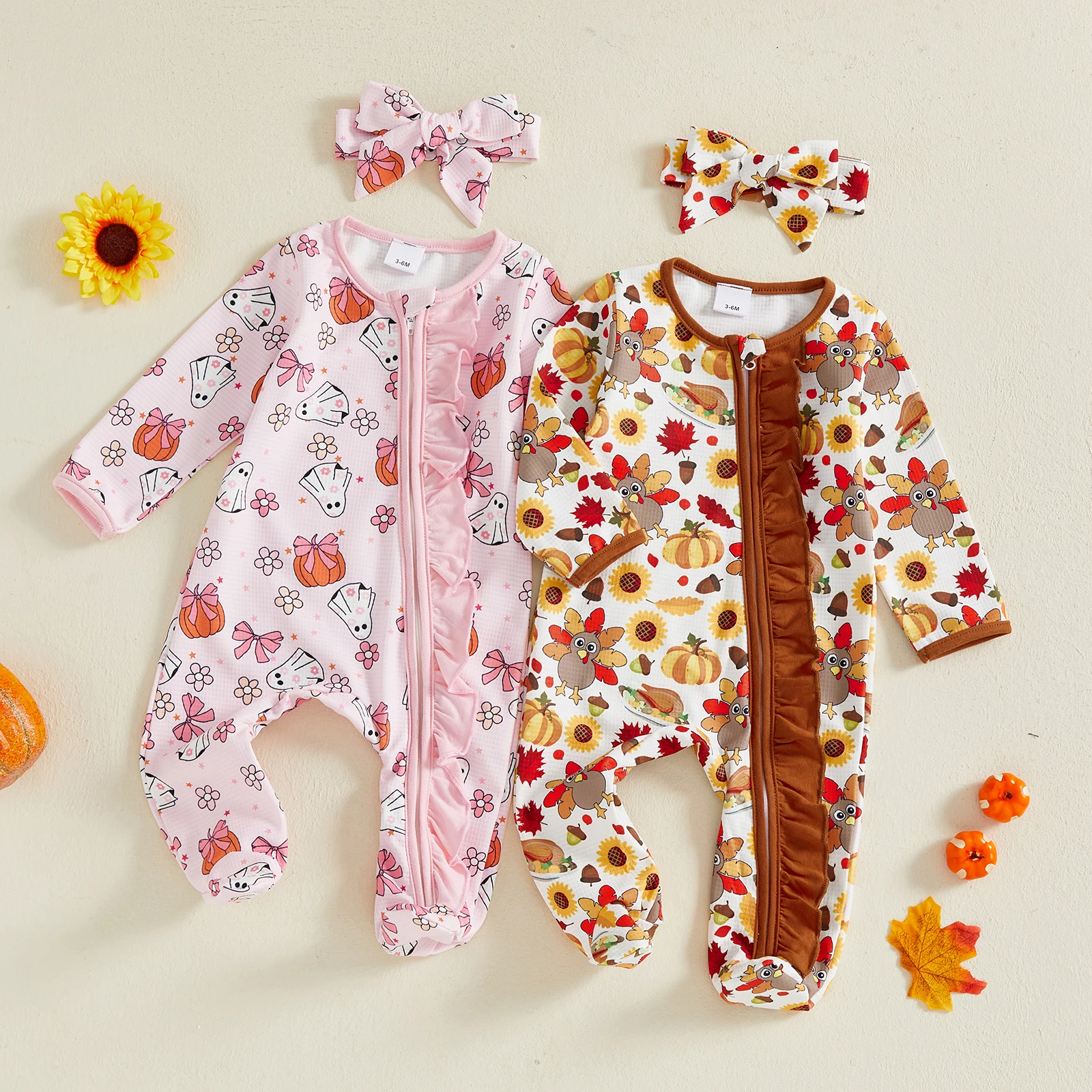Comprar Pelele para bebé recién nacido, mono con patas y cremallera con volantes de manga larga y diadema, traje para volver a casa, Halloween, 2 uds.