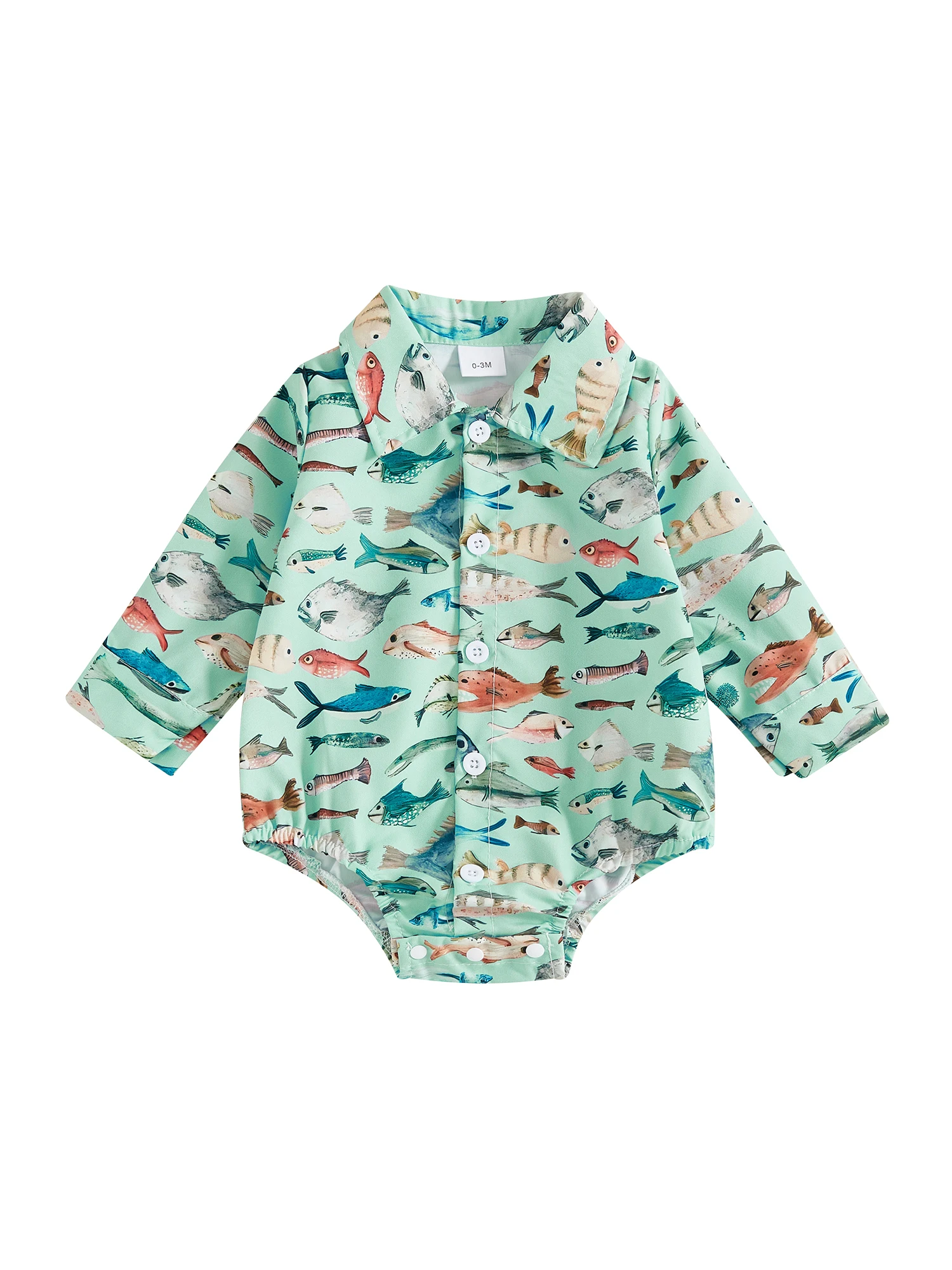 Mameluco para bebés y niñas, mono de manga larga con cuello de solapa y estampado de peces, mono de otoño para recién nacidos
