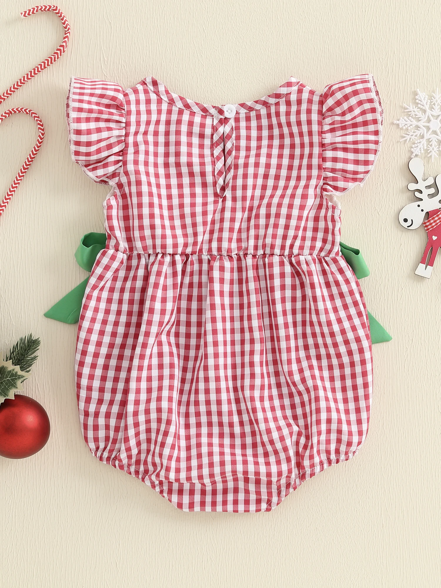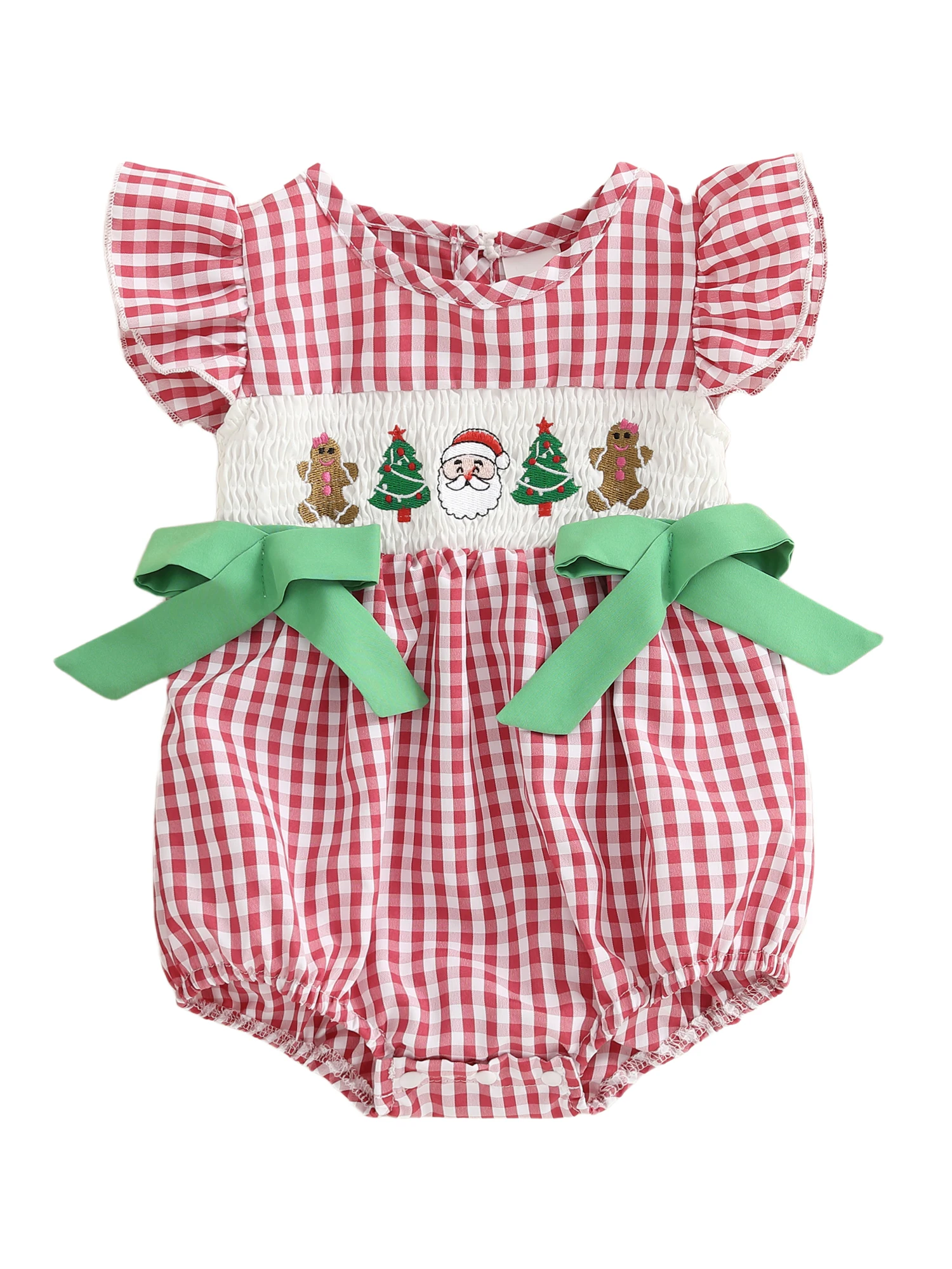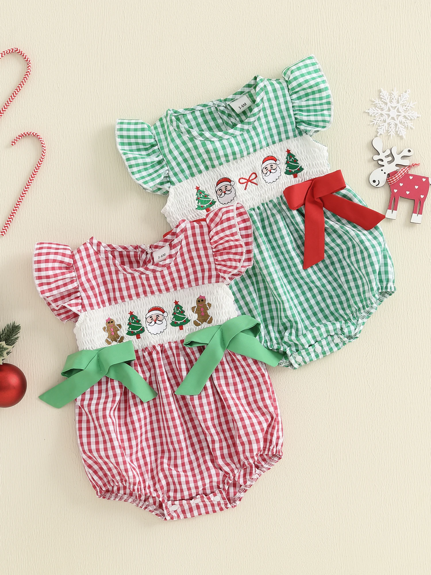 Especificación: Materiales: 65%Algodón y 35%Poliéster Patrón: bordado de árbol de Papá Noel y patrón de cuadros. Manga: Manga voladora Color: rojo/verde
