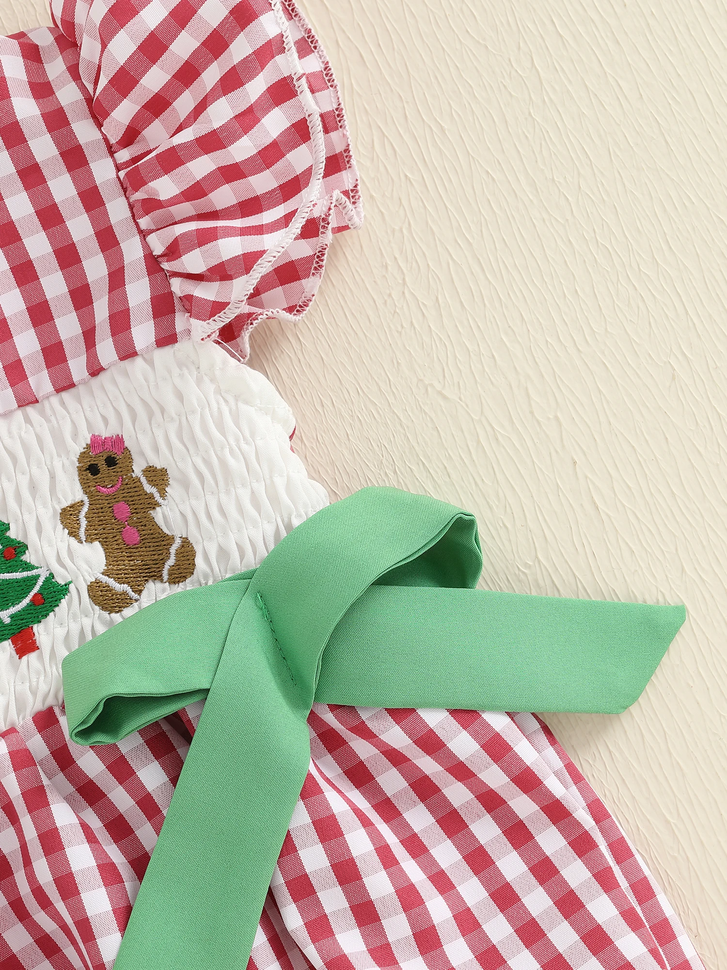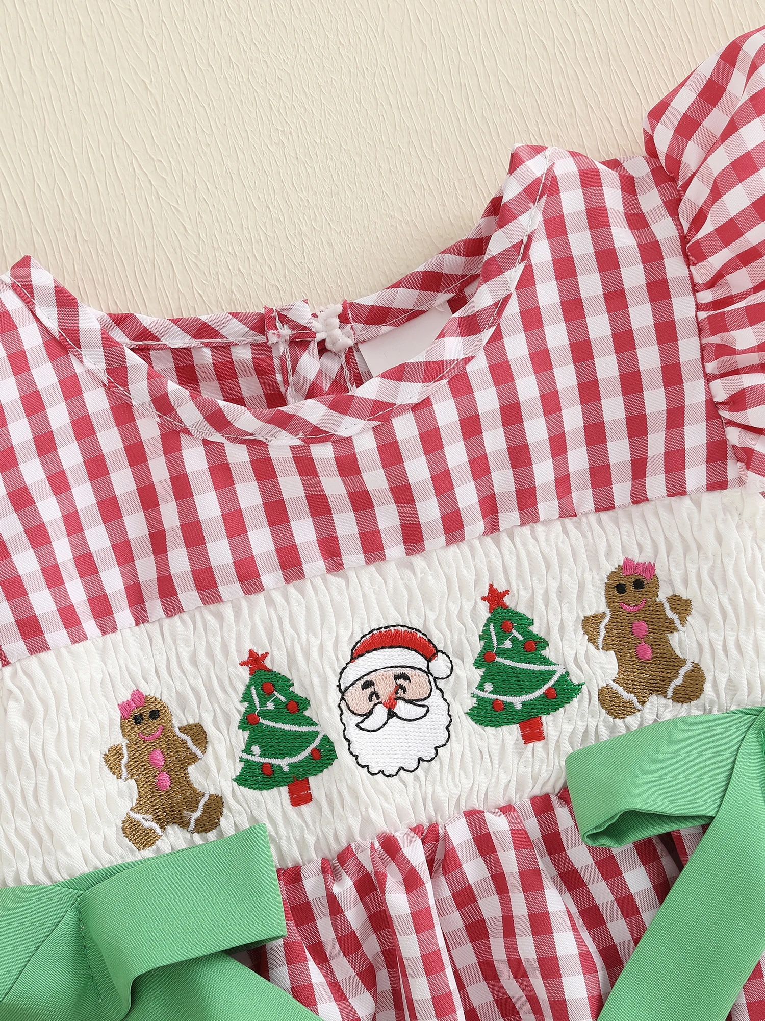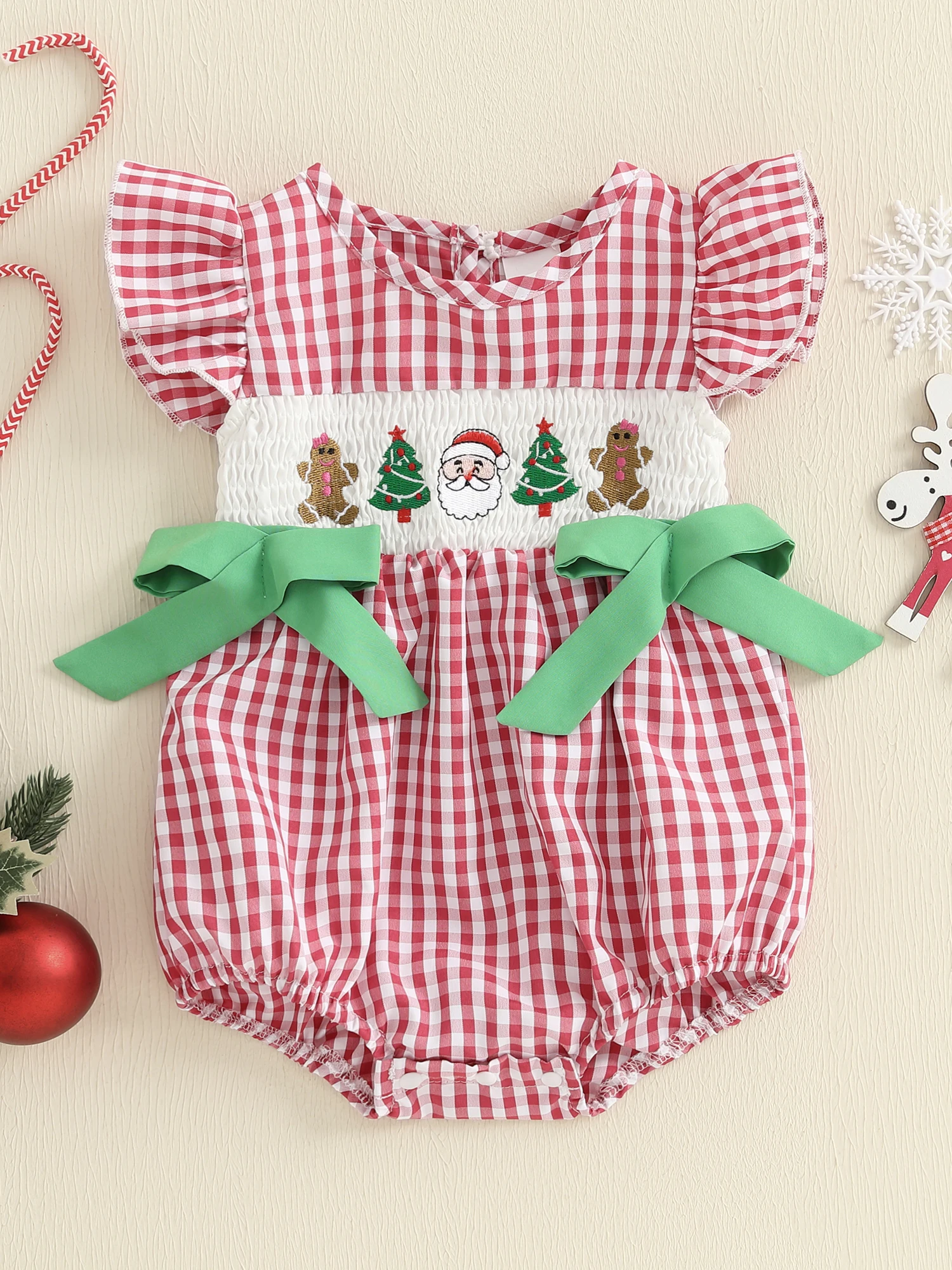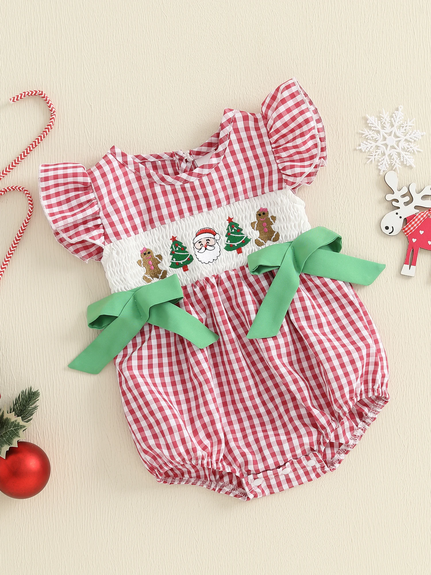 Especificación: Materiales: 65%Algodón y 35%Poliéster Patrón: bordado de árbol de Papá Noel y patrón de cuadros. Manga: Manga voladora Color: rojo/verde