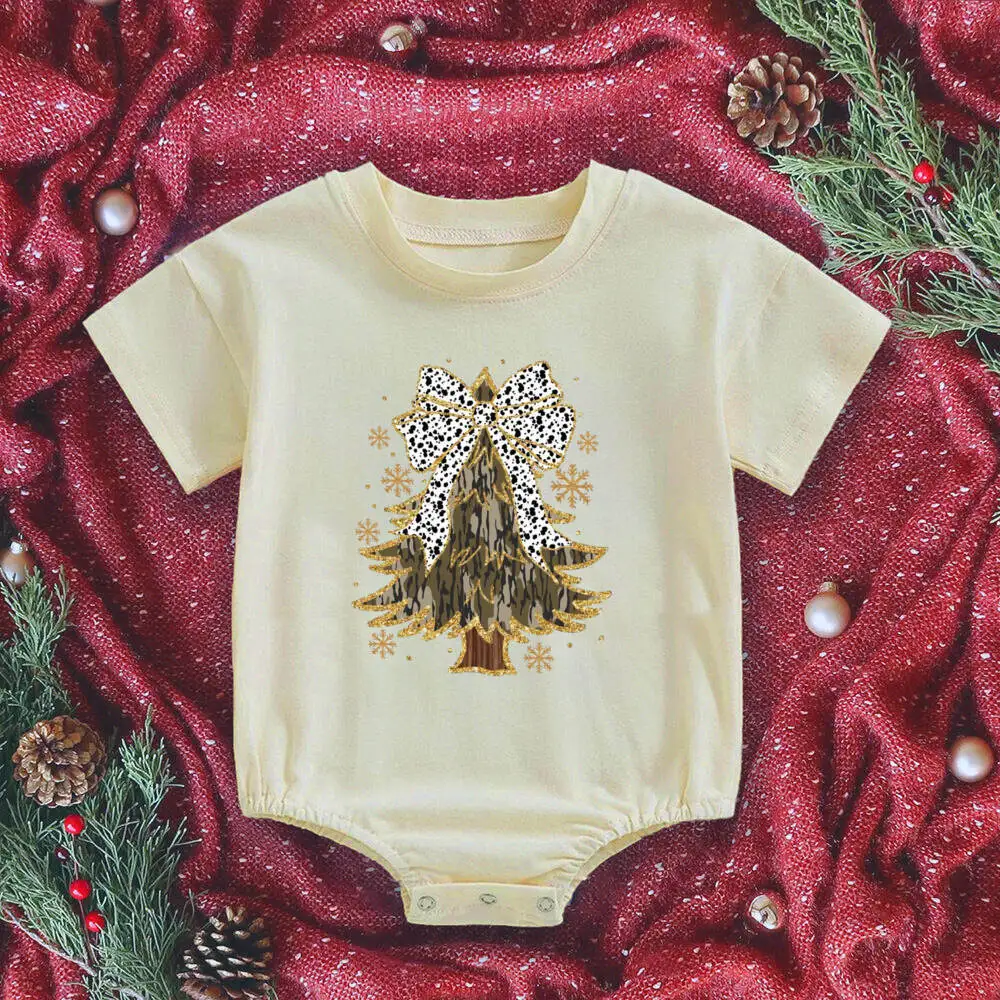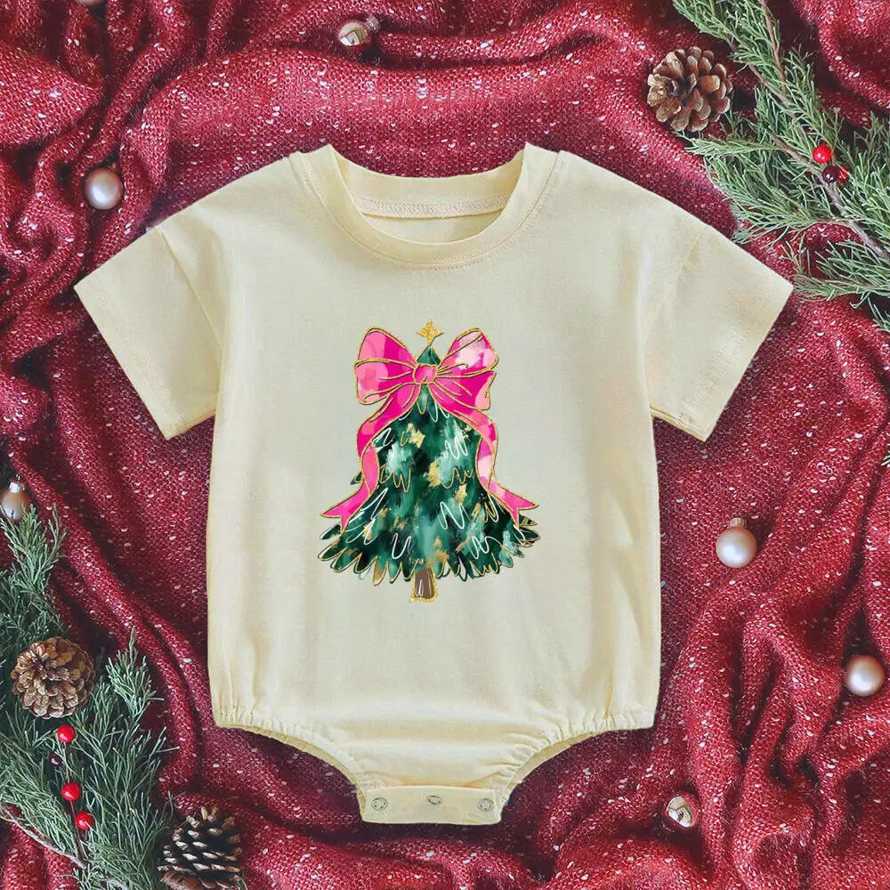 Mameluco de burbujas para bebé con estampado de árbol de Navidad, mono grande para recién nacido, traje de fiesta de Navidad, mono infantil de manga corta