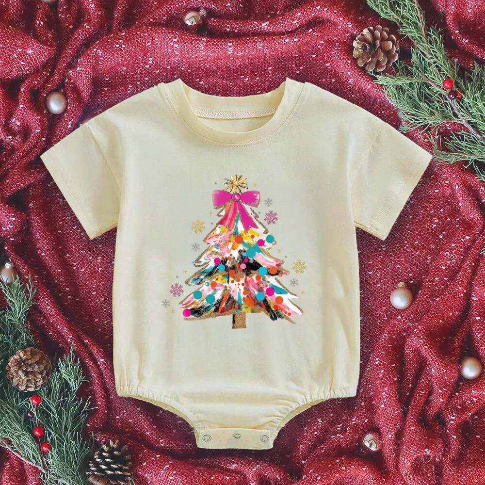 Pelele con estampado de árbol de Navidad para bebé, pelele con burbujas, vibraciones navideñas, mono grande para recién nacido, traje de fiesta de Navidad, mono infantil de manga corta