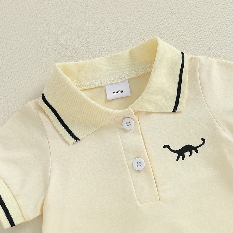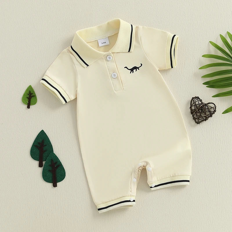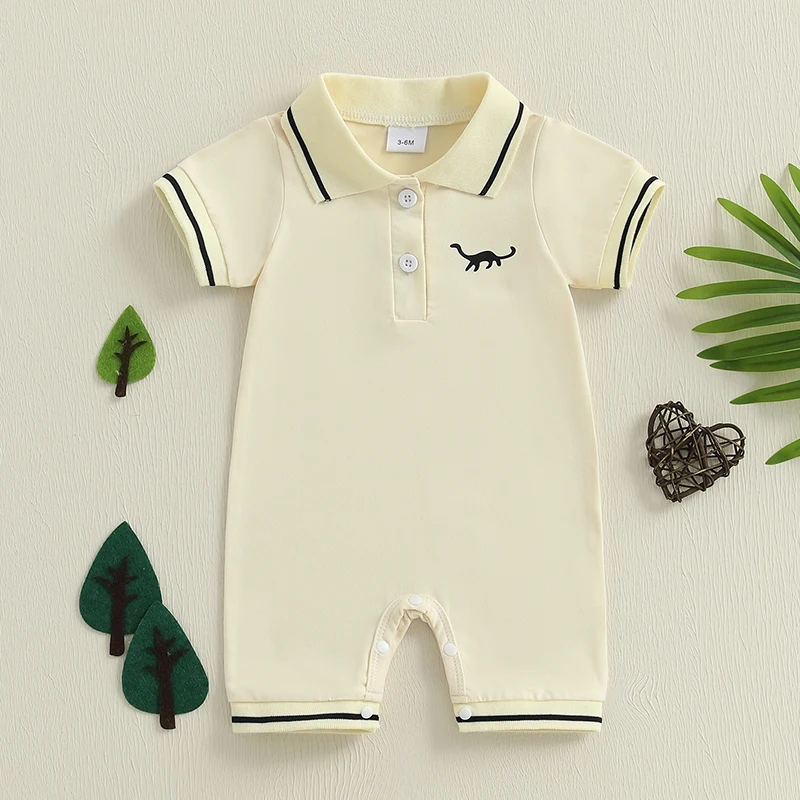 Pelele de manga corta para bebé de 0 a 18 meses, mono con cuello medio abotonado de dinosaurio, ropa bonita de verano