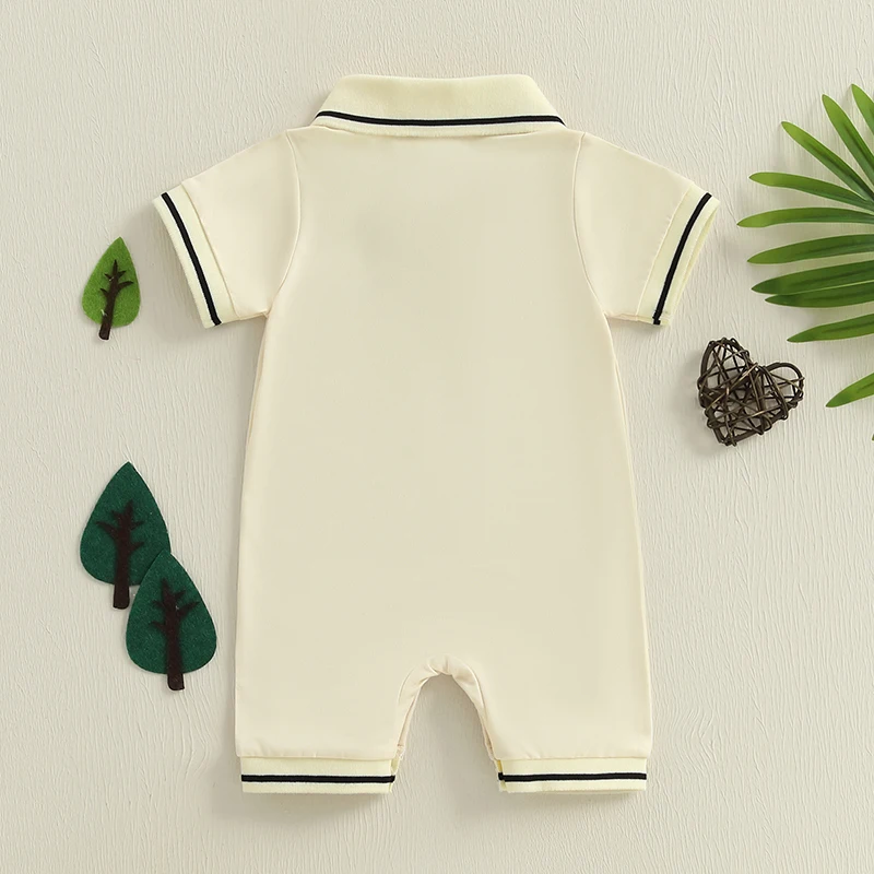 Bebé niño manga corta mameluco dinosaurio medio botón cuello mono lindo ropa de verano