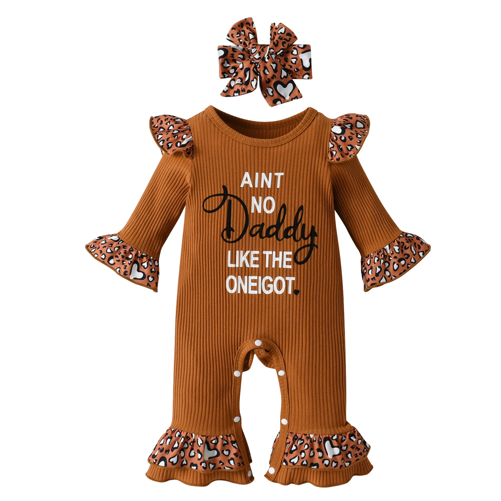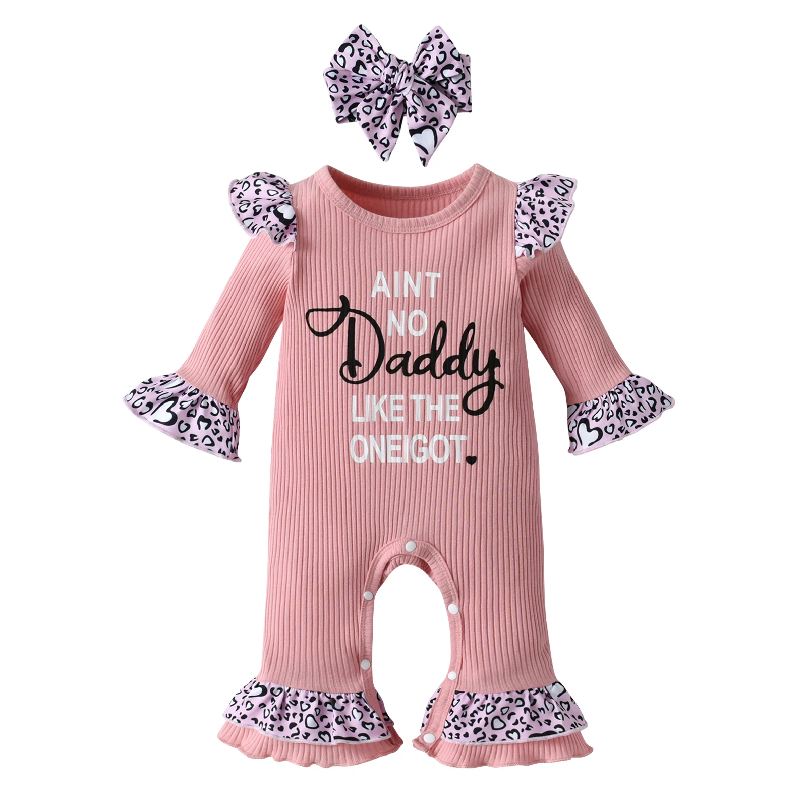 Pelele de manga larga con volantes para niña recién nacida, mono acanalado de punto con letras, viene con diadema