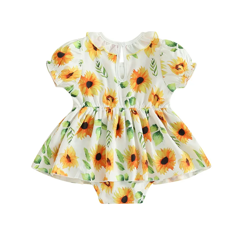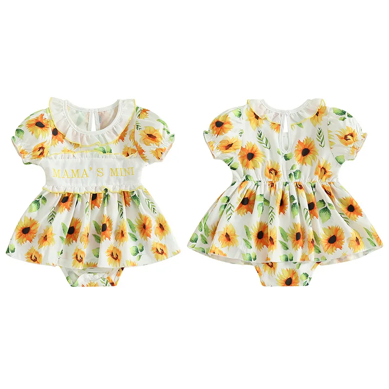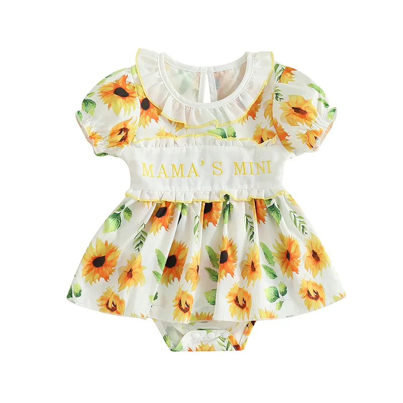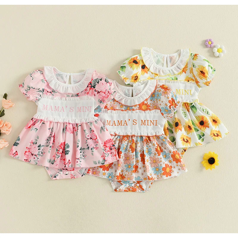 Vestido mameluco para niñas, informal, con estampado Floral, bordado de letras, mono de manga corta para recién nacidos, ropa bonita para niños pequeños