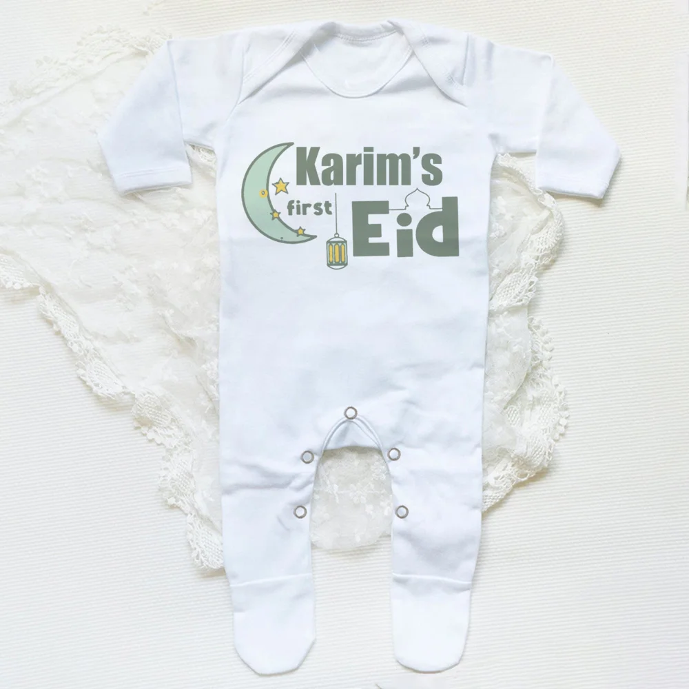 Comprar Pelele personalizado Eid para bebé, traje de dormir de manga larga con nombre personalizado para bebé, traje para recién nacido de Eid Ramadán, ropa de vacaciones musulmana islámica