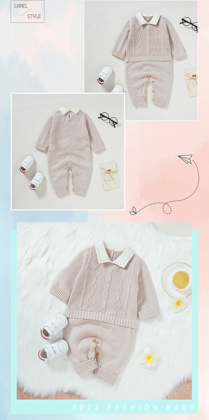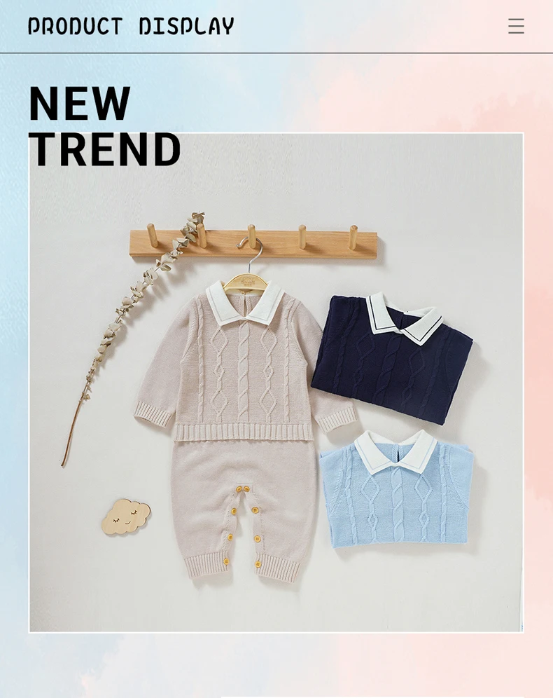 Pelele de punto para bebé recién nacido, 100% algodón, ropa para niño pequeño, cuello vuelto, una pieza, mono infantil, atuendo, corbata de moda