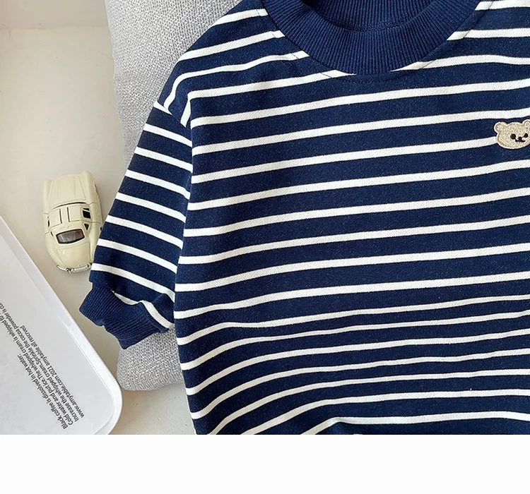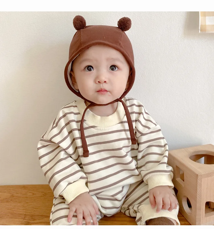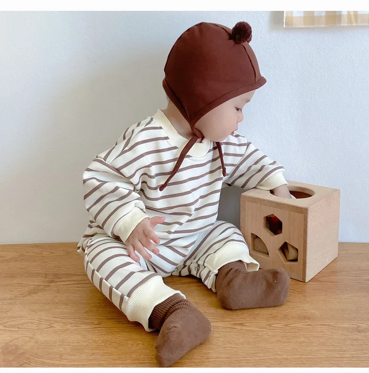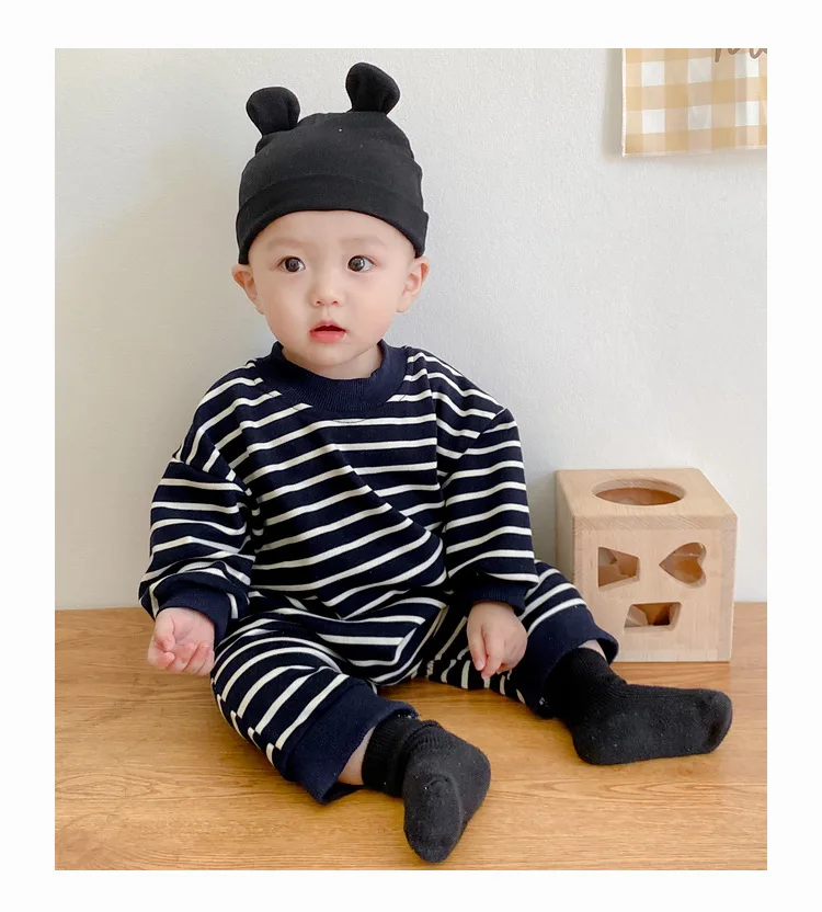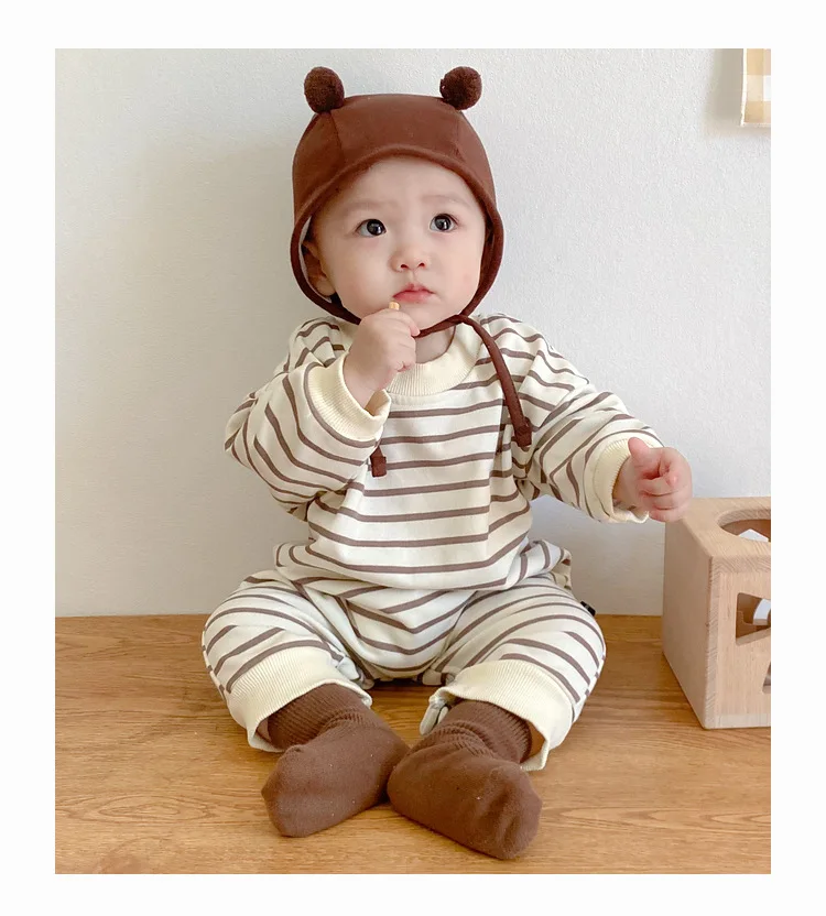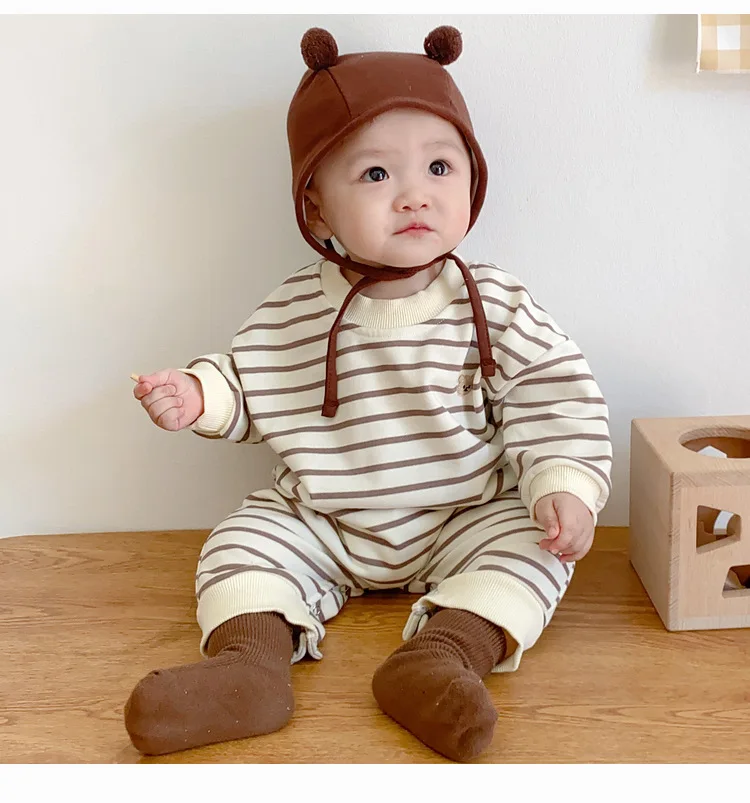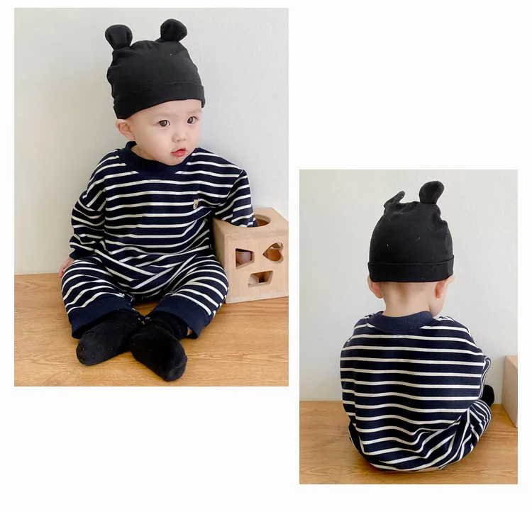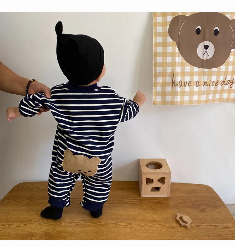 Pelele a rayas para bebé, mono informal de manga larga para primavera y otoño, mono de osito de estilo coreano para recién nacidos, ropa para niños y niñas