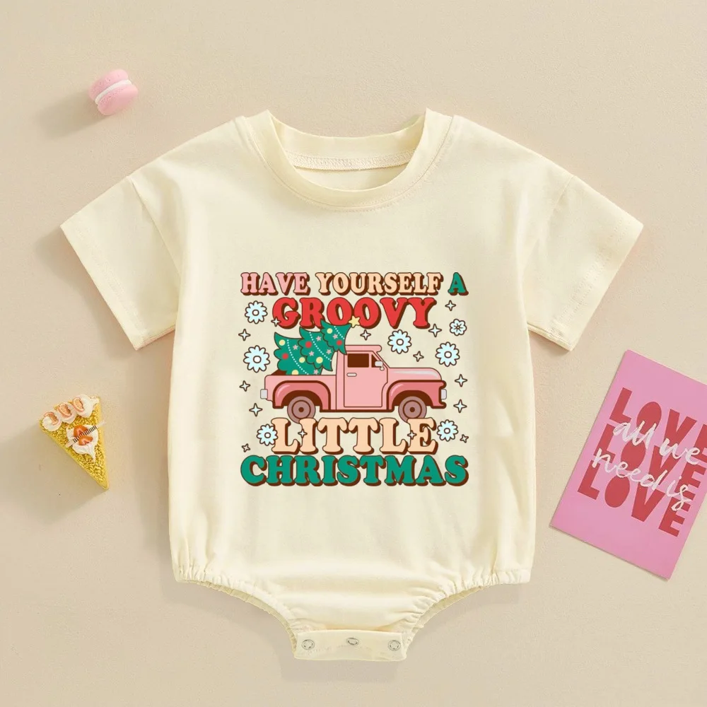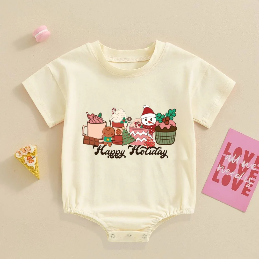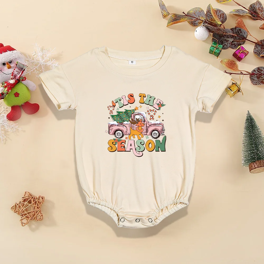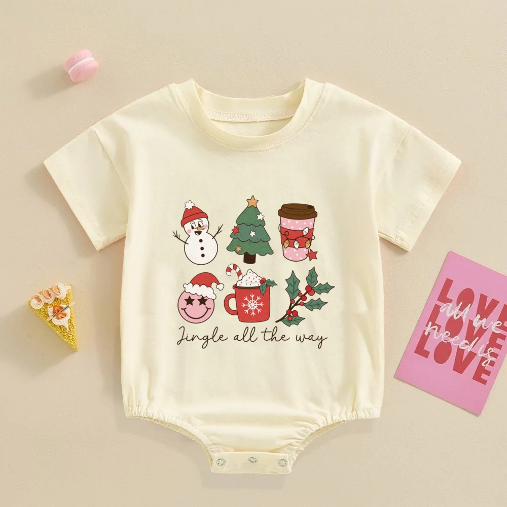 Comprar Pelele Retro de Navidad para bebé, mono festivo para bebé, Pelele de manga corta para niño pequeño