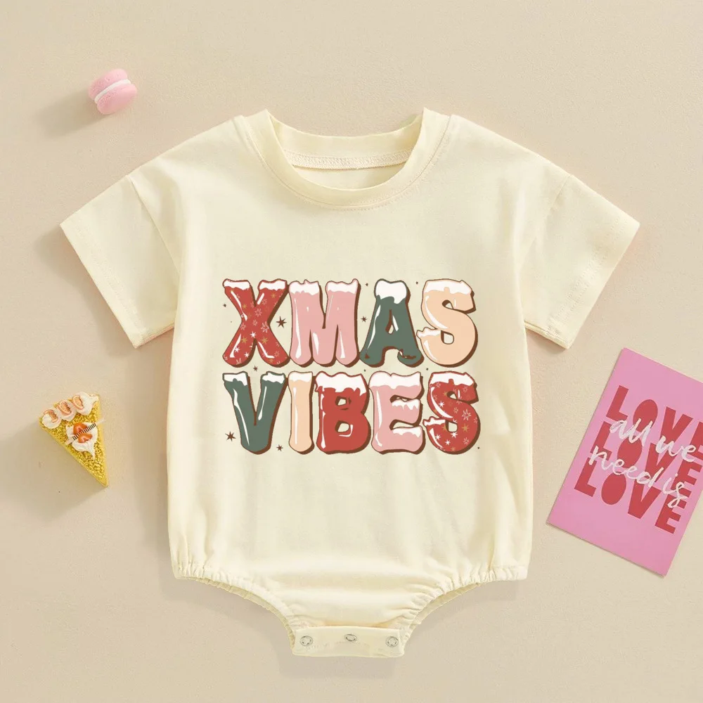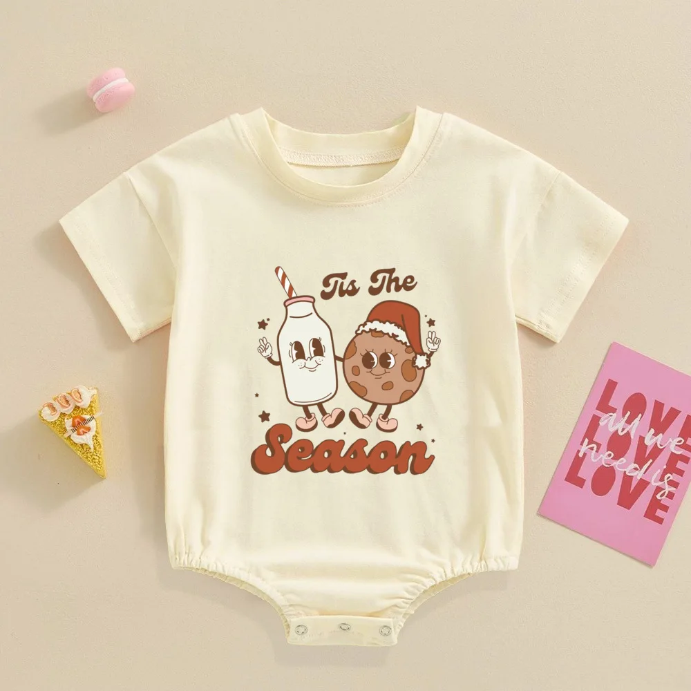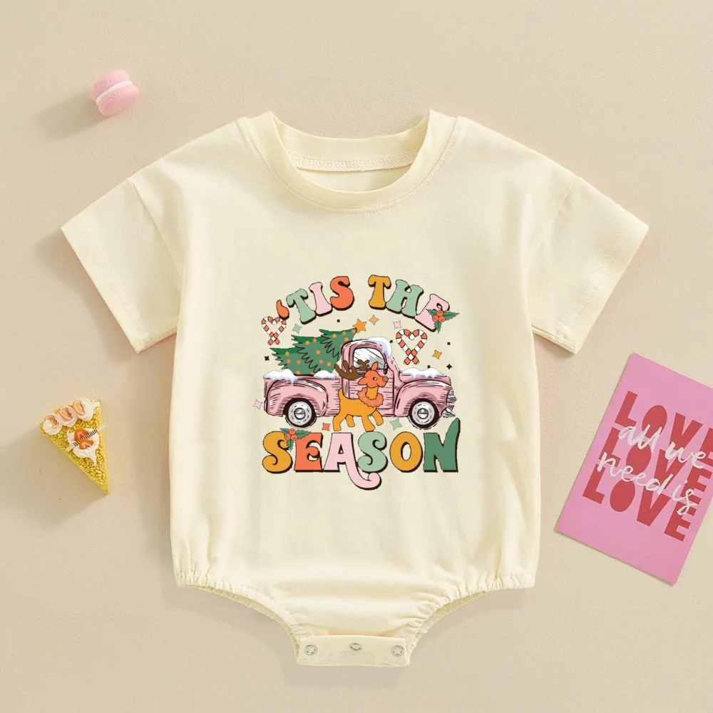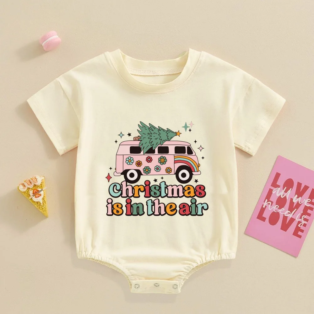 Comprar Pelele Retro de Navidad para bebé, mono festivo para bebé, Pelele de manga corta para niño pequeño
