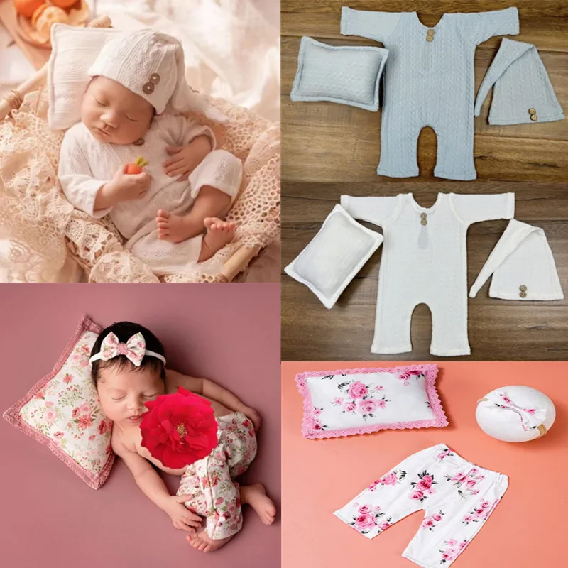Pelele de sesión de fotos para estudio de bebé, con almohada para posar, accesorios de fotografía para recién nacidos, disfraces, ropa de fotografía suave elástica para bebé