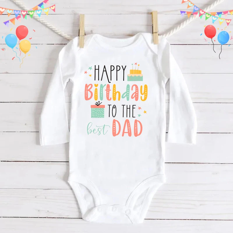 Mamelucos de bebé Feliz cumpleaños al papá, mono infantil estampado, ropa para niños y niñas, mono de regalo de cumpleaños para papá, trajes para niños pequeños