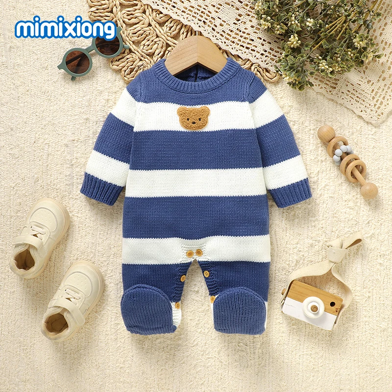 Peleles bonitos para bebé, monos, ropa a rayas azules y blancas, trajes tejidos para recién nacidos, niños y niñas, monos de una pieza para niños pequeños