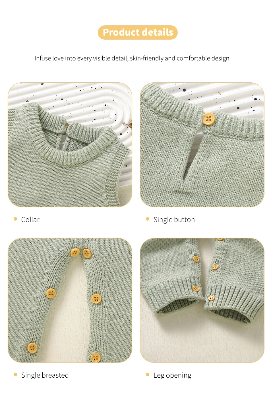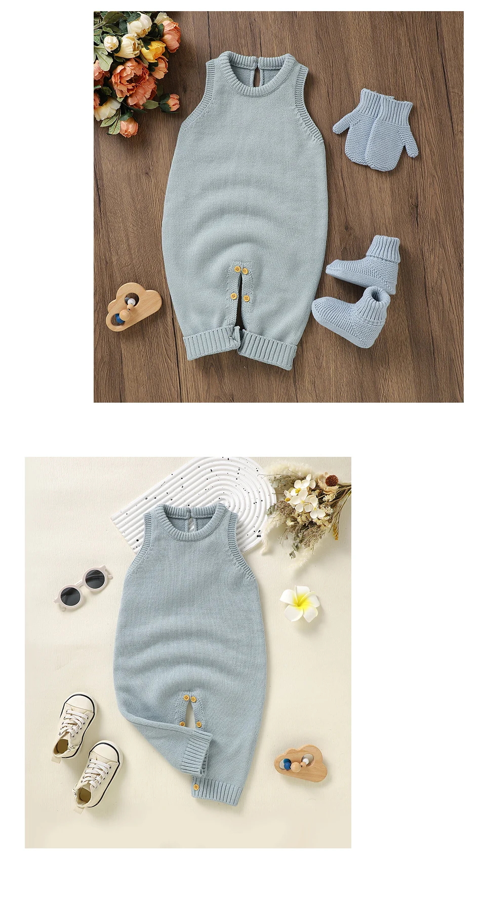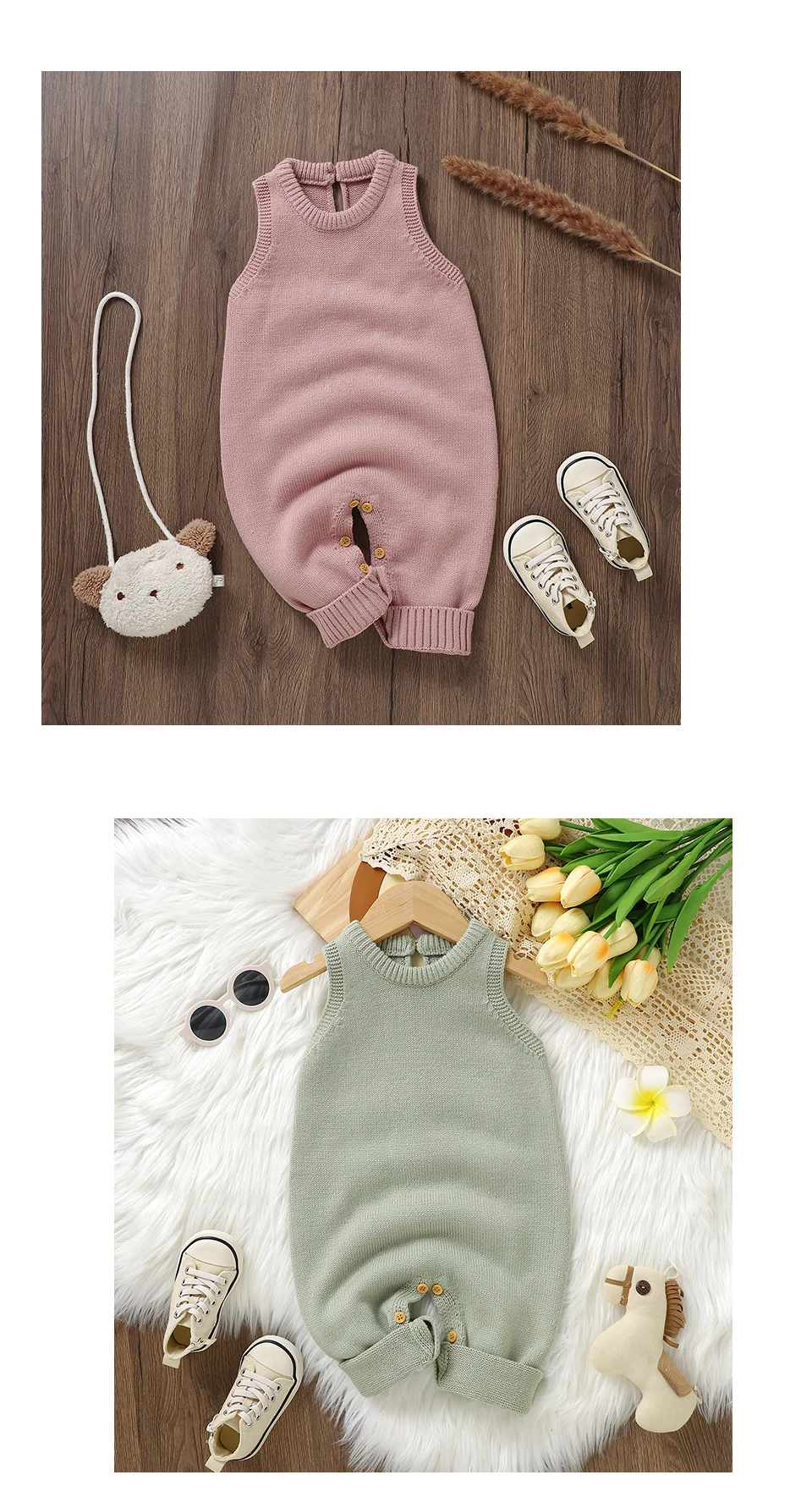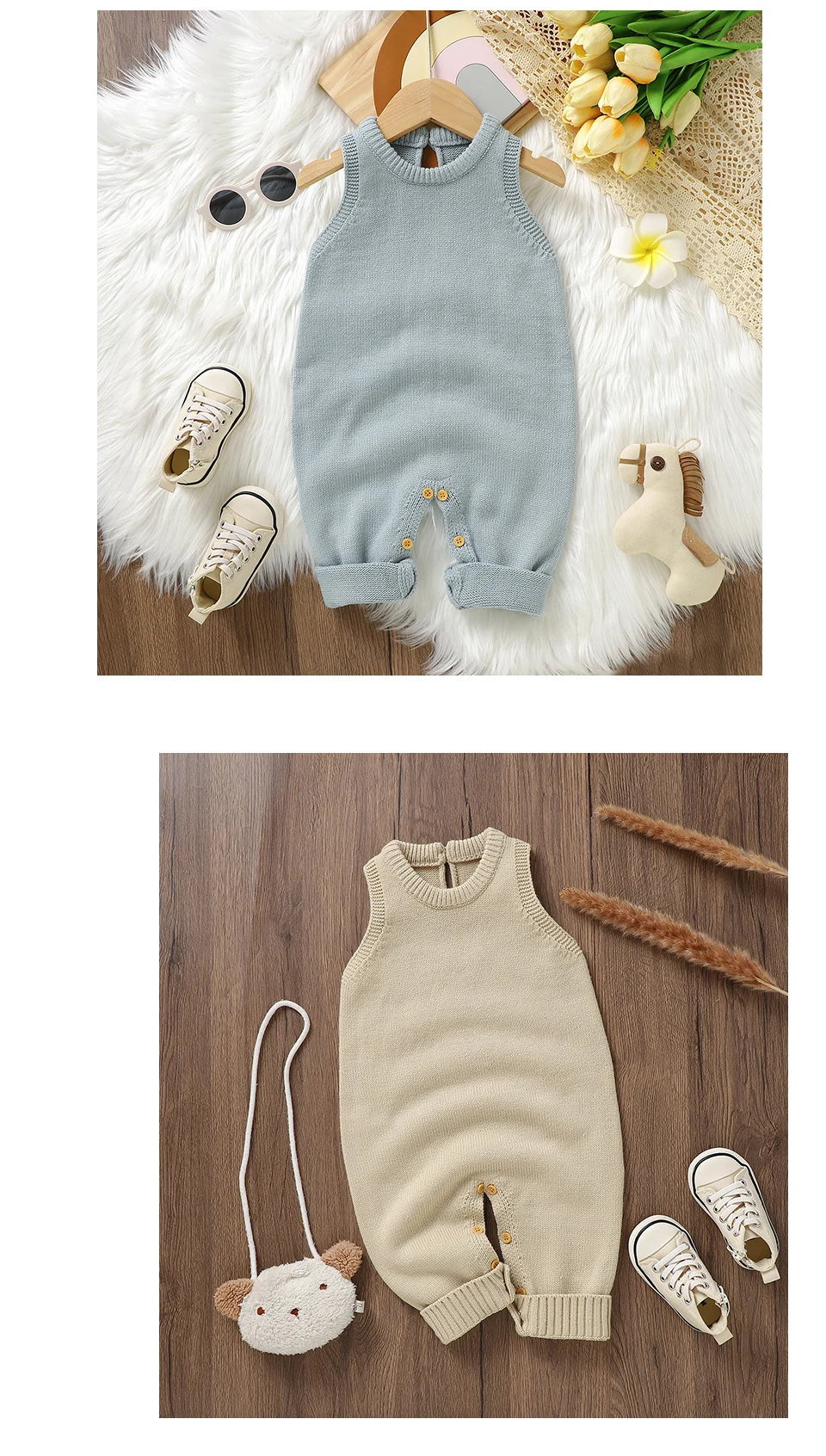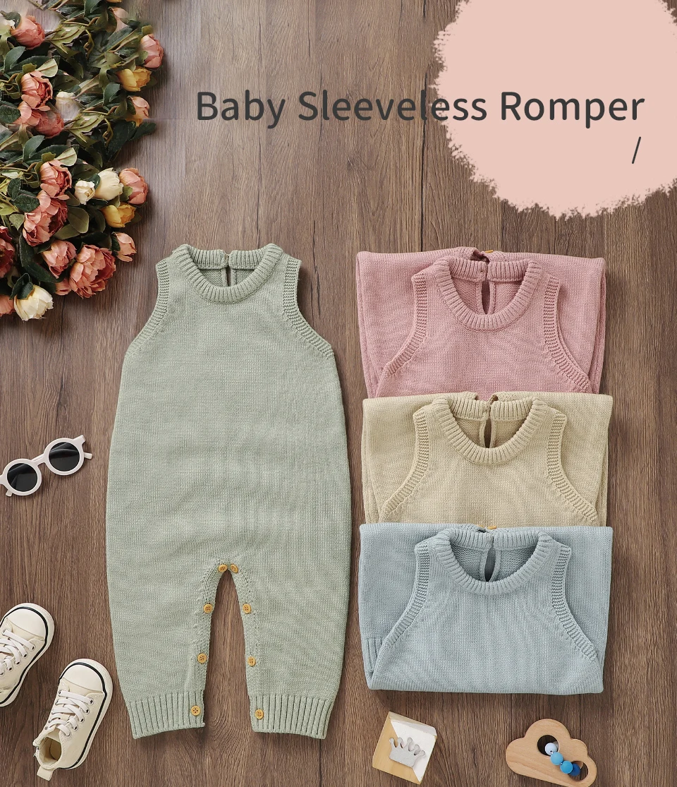 Peleles informales lisos sin mangas de punto para bebé, suéteres de una pieza para recién nacidos, monos de 0 a 18m, monos para niños pequeños