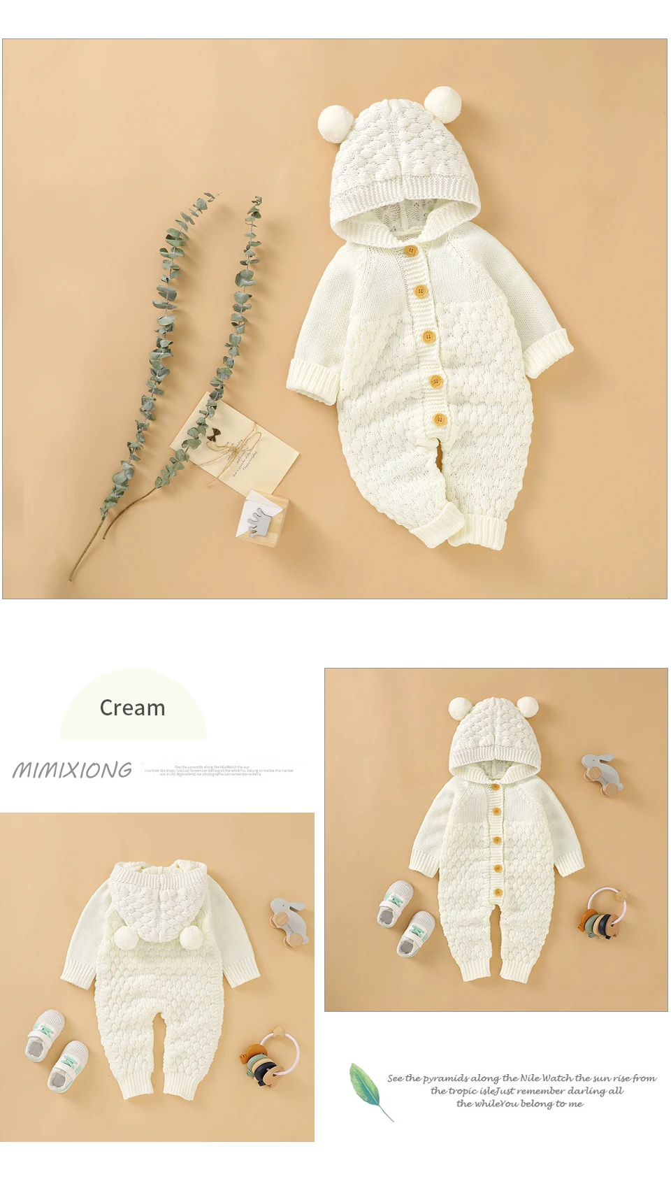 Comprar Peleles de invierno para bebé, ropa de otoño lisa con capucha, manga larga, monos tejidos para recién nacidos, monos para niños y niñas, conjunto infantil de una pieza