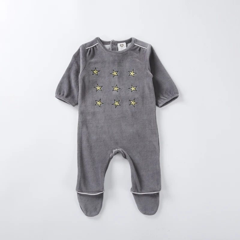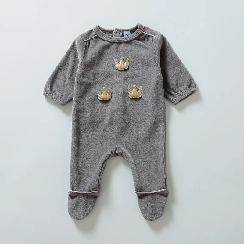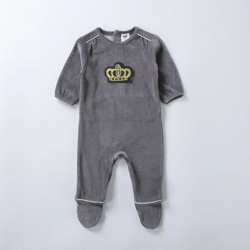 Mamelucos para pies de Bebé Ropa de manga larga monos recién nacidos niños niño y niñas ropa gris bebé terciopelo invierno corona mameluco