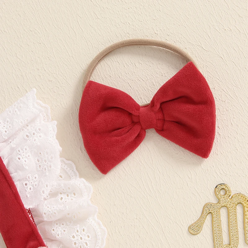 Mamelucos para niñas, ropa de Navidad, monos infantiles con manga voladora de retazos de encaje con diadema