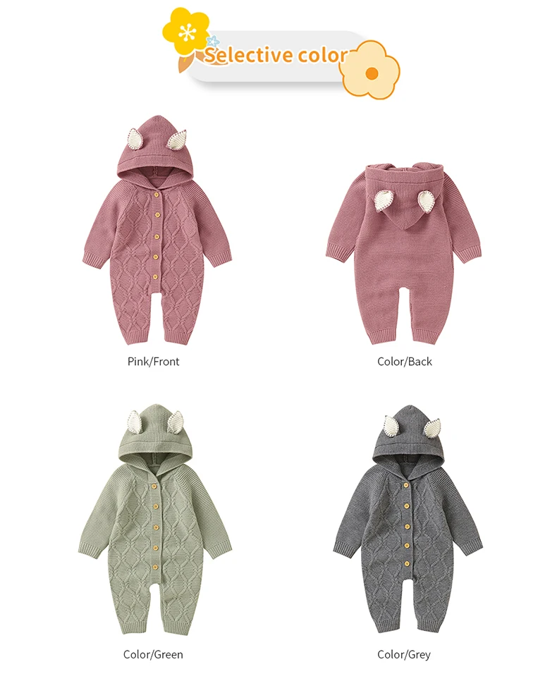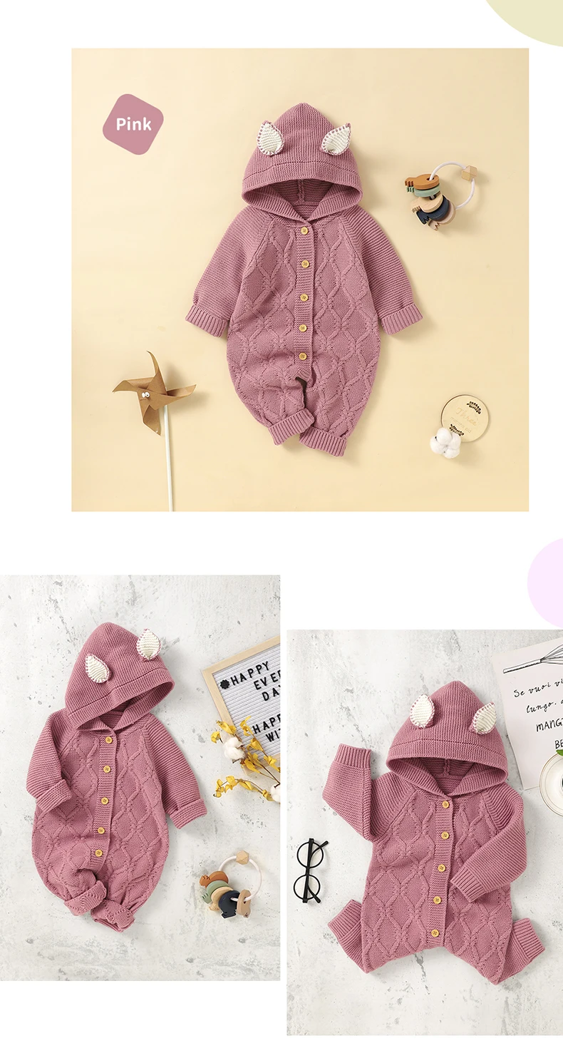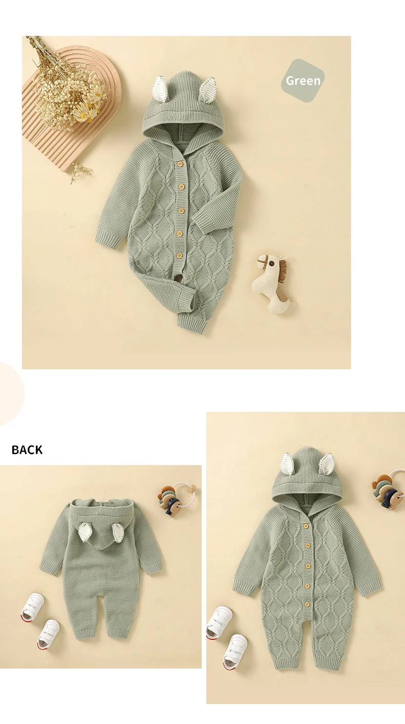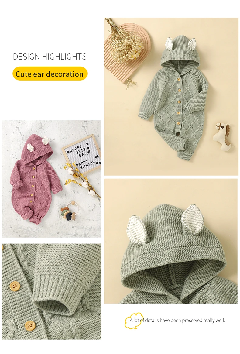 Peleles de punto para bebé, traje de mono para niña recién nacida, ropa de otoño de manga larga para niño, mono con capucha a la moda, monos con orejas bonitas