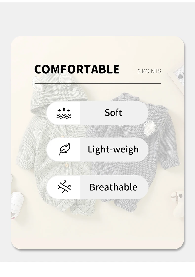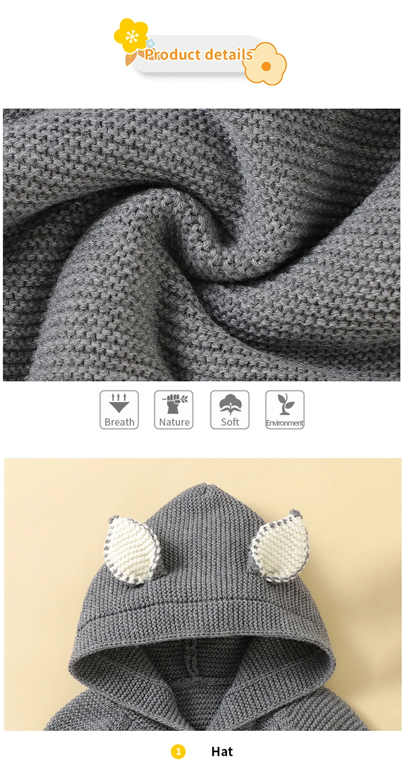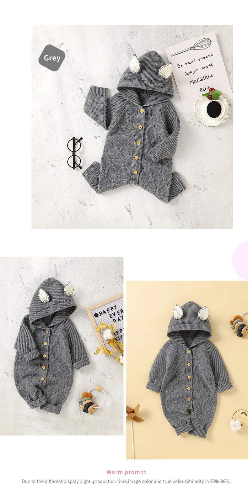 Peleles de punto para bebé, traje de mono para niña recién nacida, ropa de otoño de manga larga para niño, mono con capucha a la moda, monos con orejas bonitas