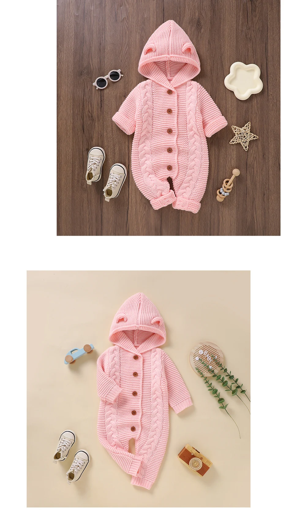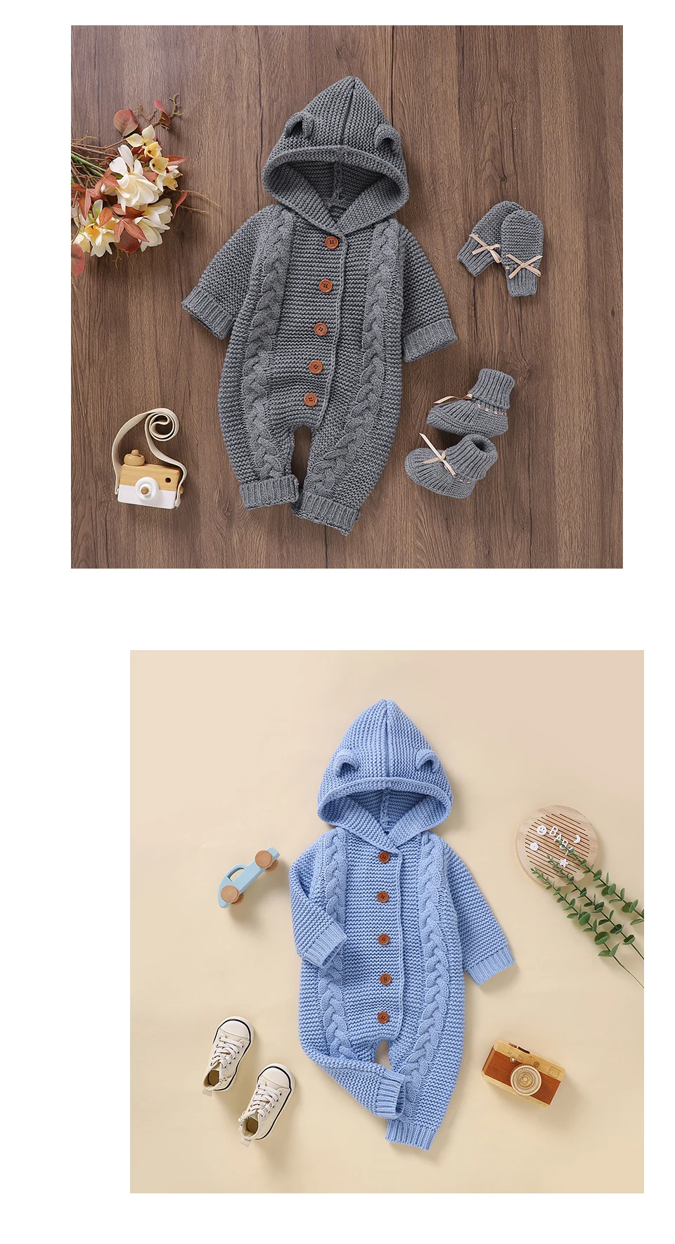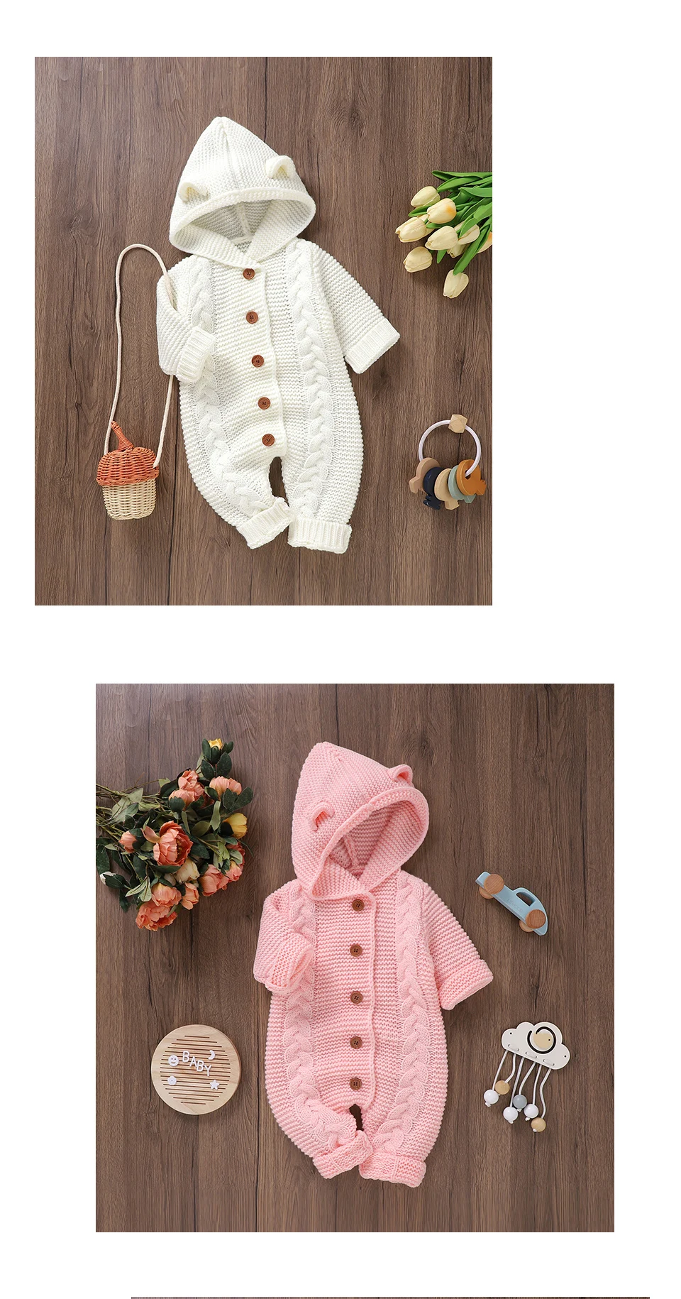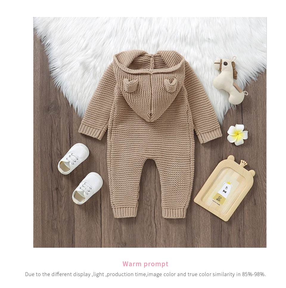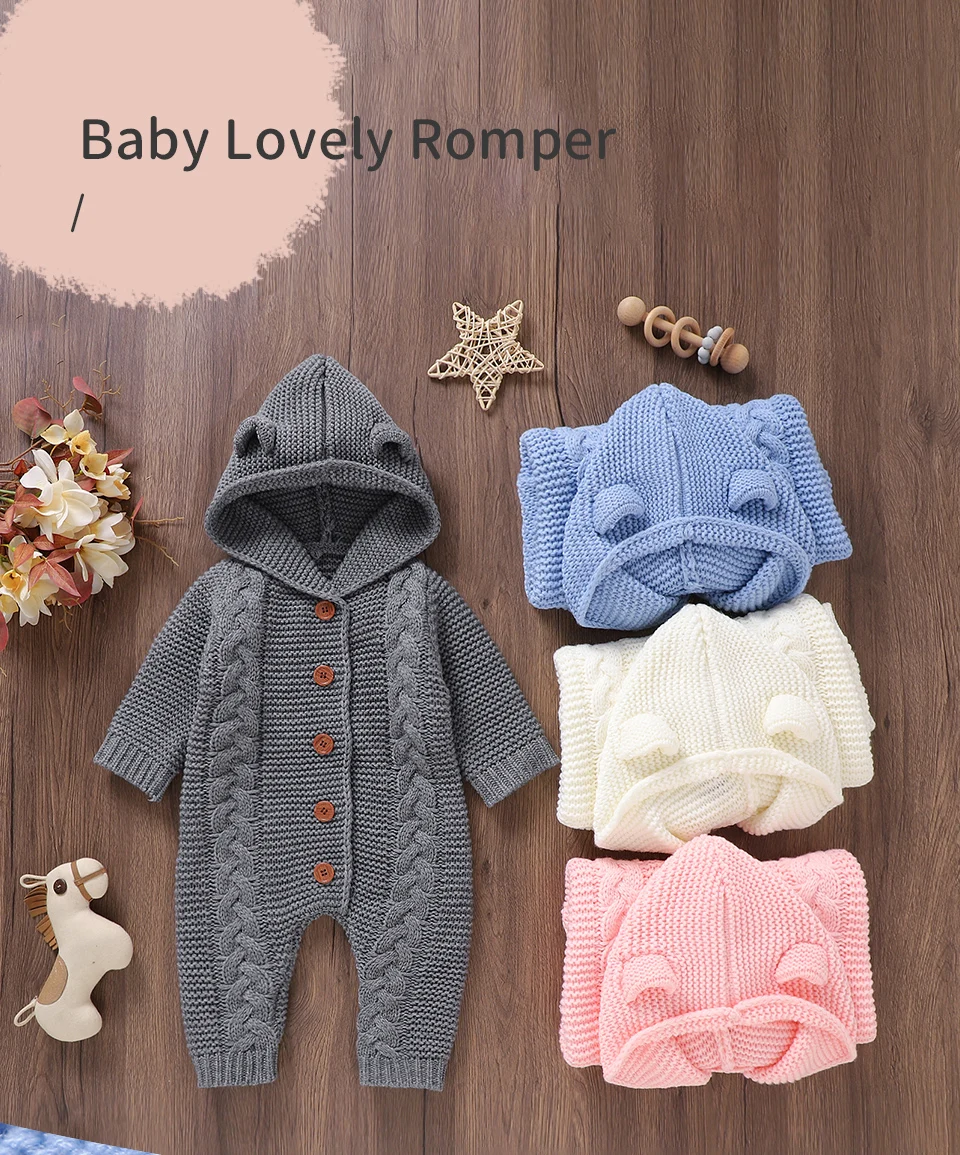 Peleles tejidos para bebé, ropa de invierno con capucha de manga larga para recién nacidos, monos para niños y niñas, trajes de 0 a 18m, monos infantiles de una pieza